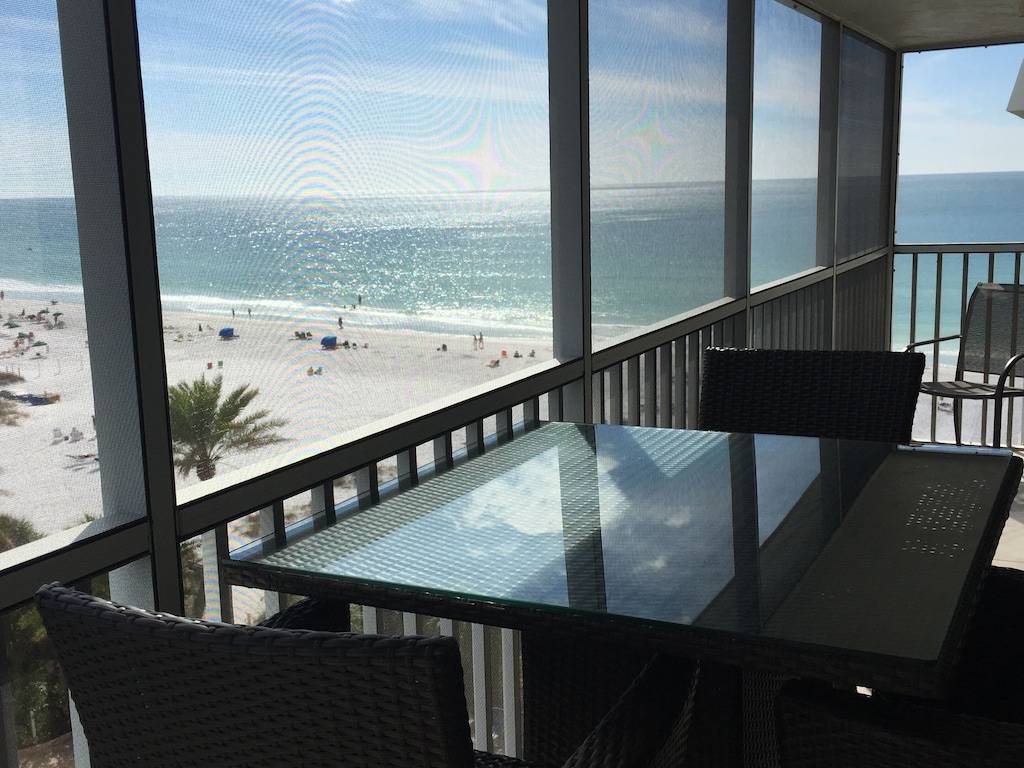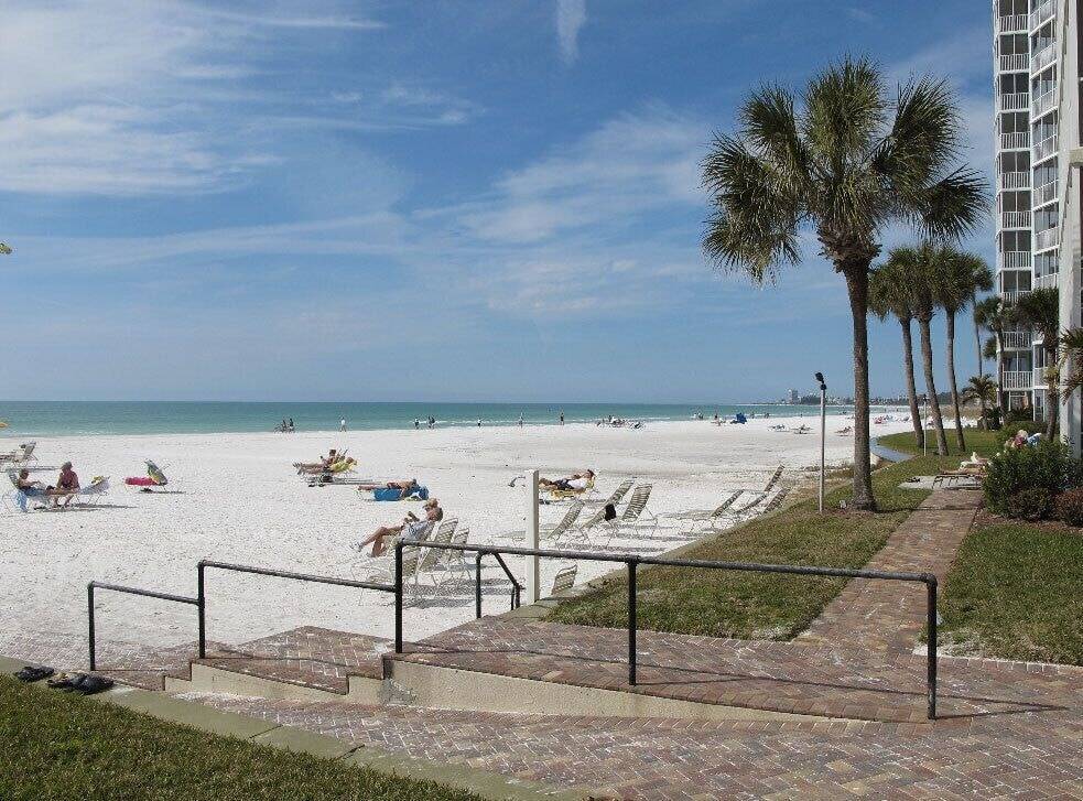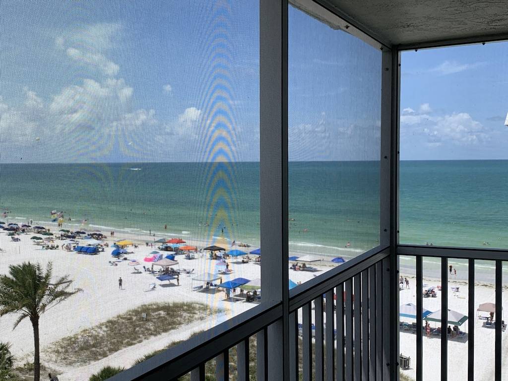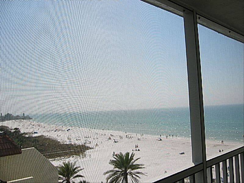 Every room of this top-floor condo opens to a screened lanai with direct views of the crystal sands of Siesta Key beach and the beautiful blue waters of the Gulf of Mexico. Expansive view overlooks the entire south end of the beach all the way down to Point of Rocks.
