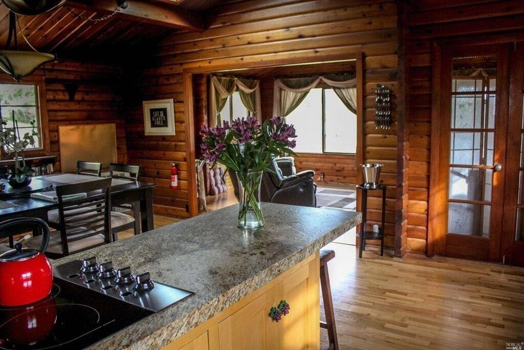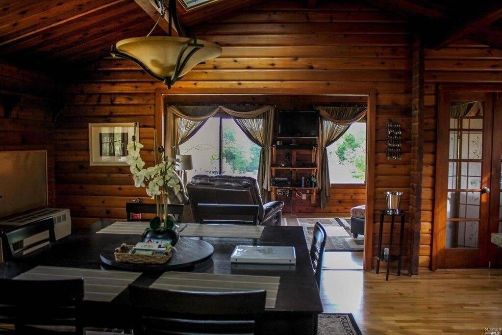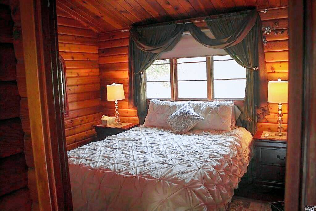 Cozy cedar log cabin for two – beautiful views overlooking rolling vineyards in West Dry Creek Valley