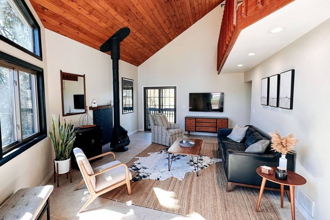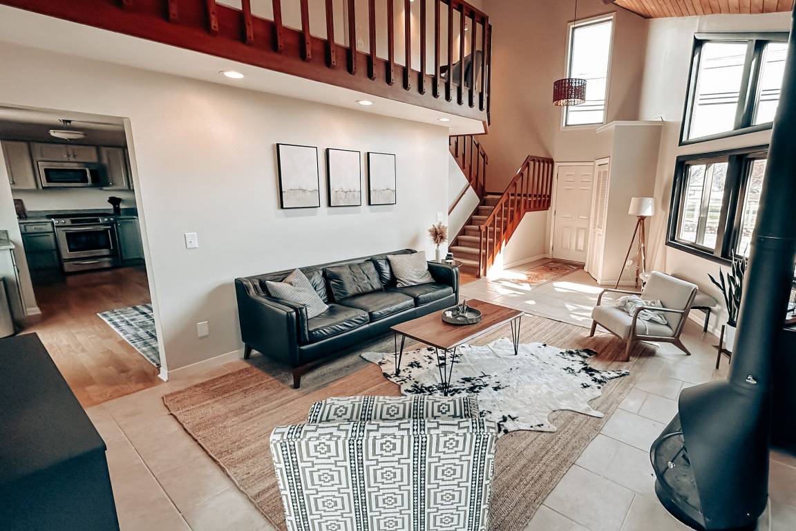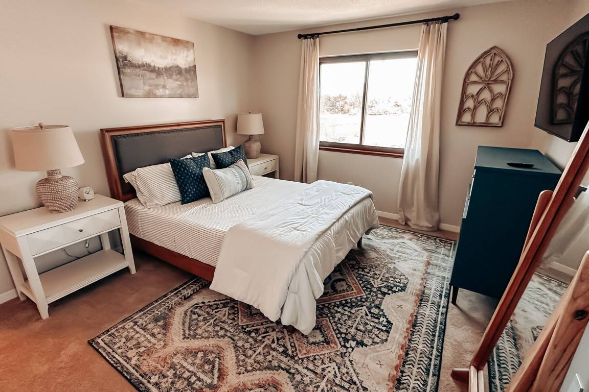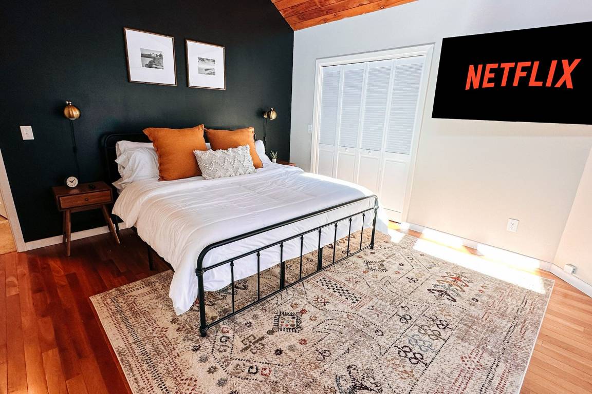 The home includes a WFH space if duty calls and two private bedrooms + loft space with 2 convertible chairs that open to twin beds (fresh linens included).