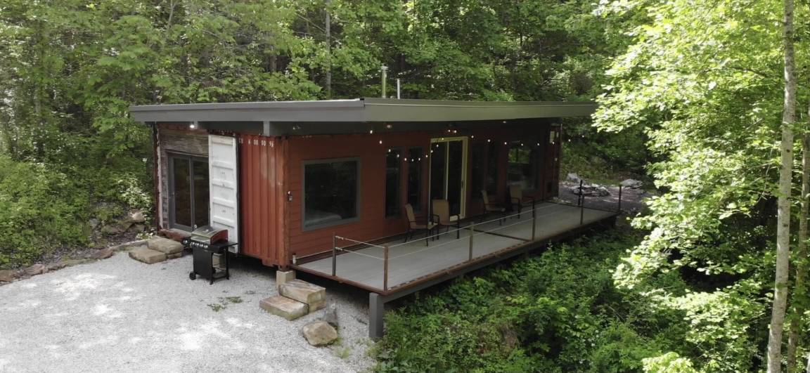 Come stay at my Shipping Container Cabin in the heart of Red River Gorge! This beautiful, unique cabin is hand crafted and equipped for a perfect, relaxing stay in the gorge. It is secluded and surrounded by trees for a truly peaceful and relaxing experience.