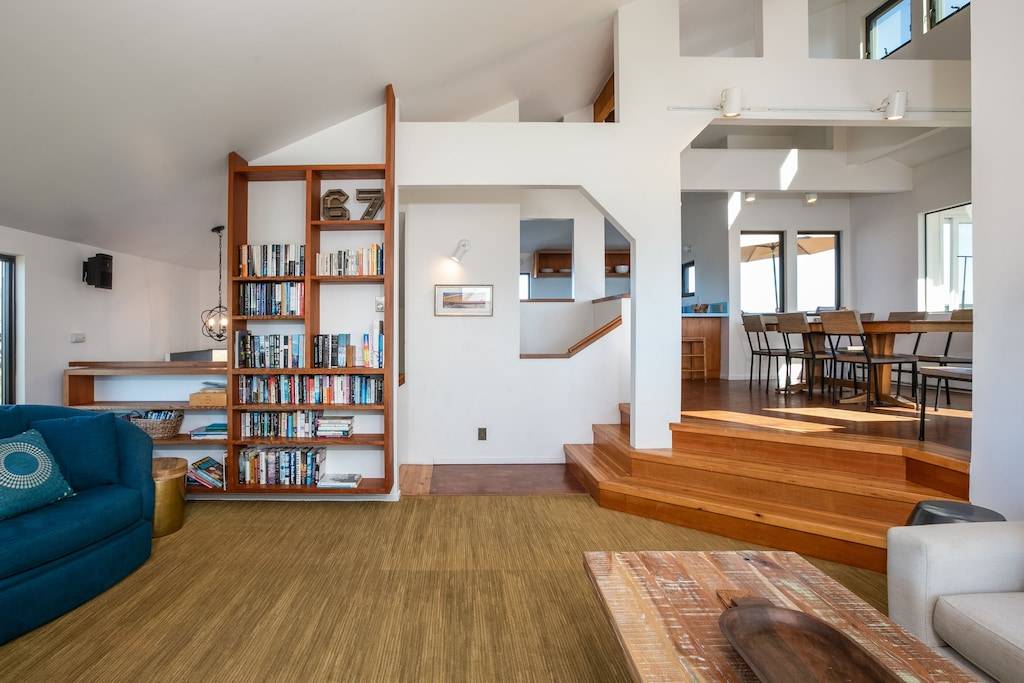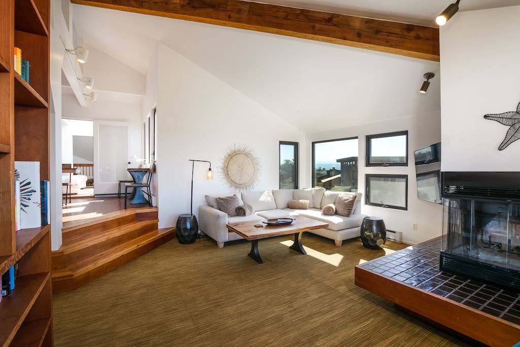 Gather in the living room with views from Santa Cruz to Moss Landing to Monterey. Plenty of room to enjoy game night, build a puzzle with the little ones, grab a book from the floor to ceiling bookcase, enjoy the fireplace, or catch up on your binge watching on the 60 inch TV.