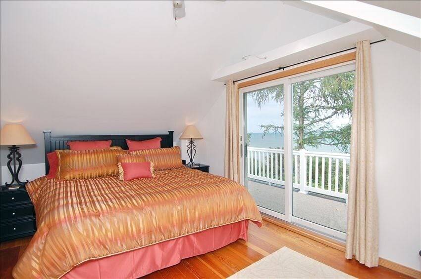 Not your typical cookie-cutter destination, Lake Shore House offers privacy in a single-family home that features central air-conditioning, hardwood floors, laundry, wood-burning stove, one-car garage, expansive deck, updated kitchen and bathes. Sleeping accommodations for six, two second floor bedrooms with skylights and ceiling fans, one with a king size bed and a balcony overlooking the Lake, the other featuring a queen size bed, plus a queen sleeper sofa in the living room with abundant natural light from three directions. The main floor ceramic tile bath has a full-size tub with shower and pedestal sink. The lower level features a half-bath, laundry and a twin rollaway bed.