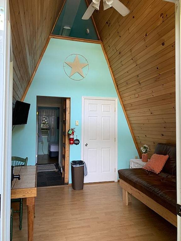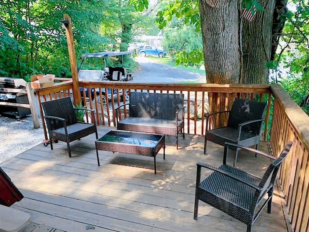 This a-frame cabin is ideal for a couple looking to get away. Relax on the spacious waterfront deck, sit by the fire, or get involved in activities at the park. It’s a great destination vacation. Pool, pond, entertainment and activities.
