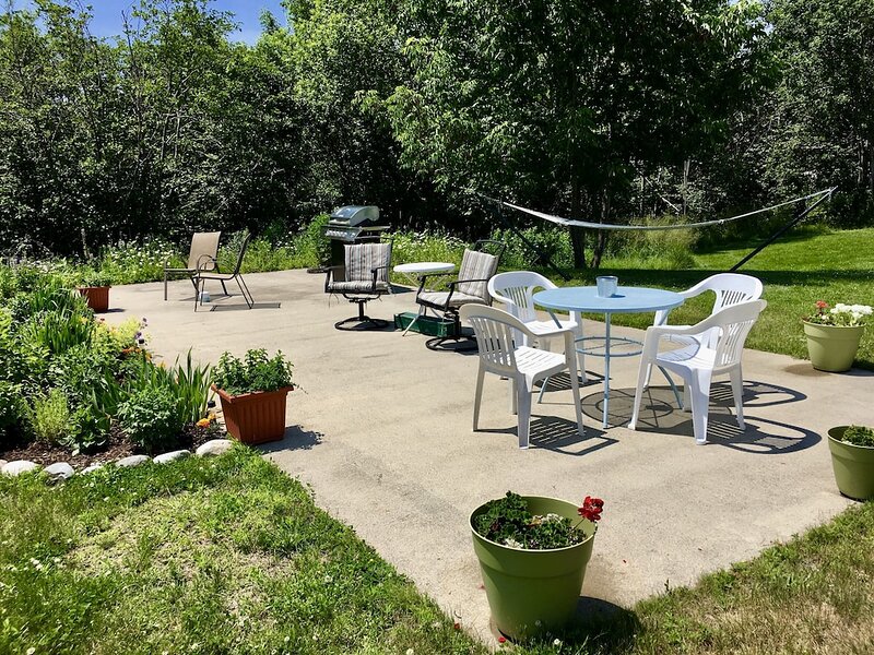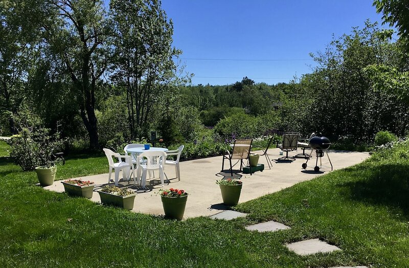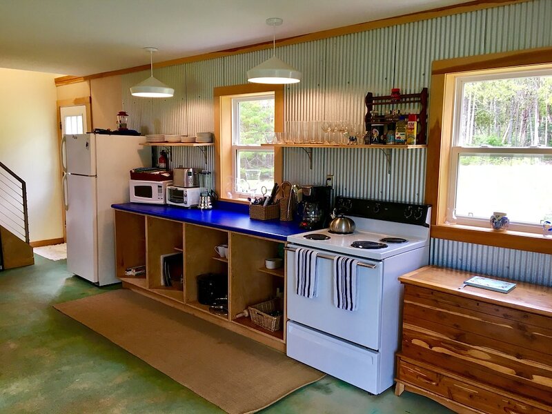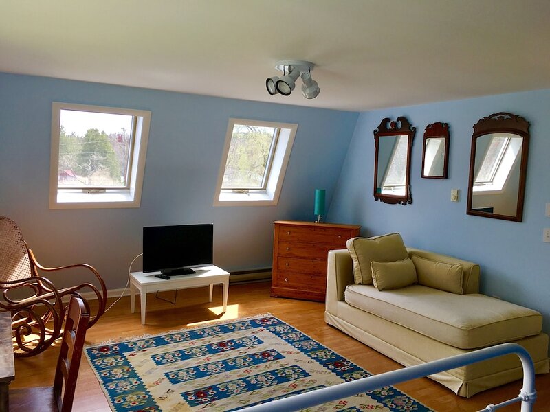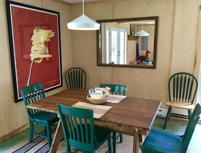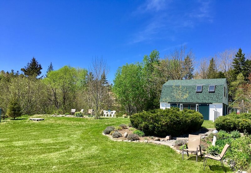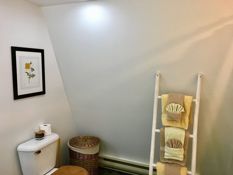 The Greenhouse is a cool, contemporary open loft/barn style space. Huge kitchen, living room and dining area downstairs. Double French doors open onto a lush lawn, gorgeous garden, sun-filled patio and expansive backyard. Upstairs, you’ll find a large master bedroom, bathroom with sparkling white subway tiles and comfortable light-filled twin bedroom. Washer/dryer.Dishwasher.Cable TV.Internet access and WIFI. Toasty warm on cool nights, and cool on warm days. Away from it all yet close to all: town, hikes, lakes, beaches, waterfront.