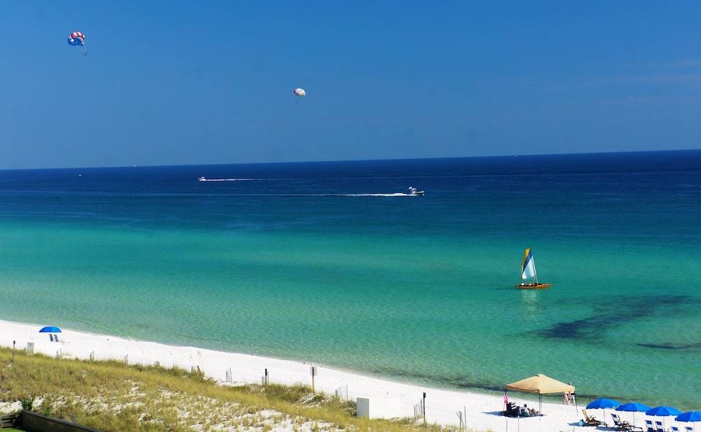 Condo is located in Destin on exclusive Holiday Isle right on the gulf at the waters edge with 300 feet of private beach ( no street to cross). Its on the 6th floor and a great location in the building for the best views. Its one of the larger 1 bedroom units at Holiday Surf – very spacious at 750 sq. ft. The kitchen is newly upgraded and completely tiled (no carpet). The appliances are new. Amenities include a seasonal heated pool, sauna, tennis courts, shuffle board, activity room with Kitchen, exercise room. Recently purchased from Barbara Davis – this condo had all 5 star reviews. Current reviews being posted.