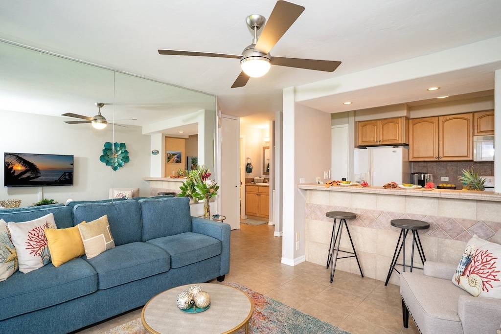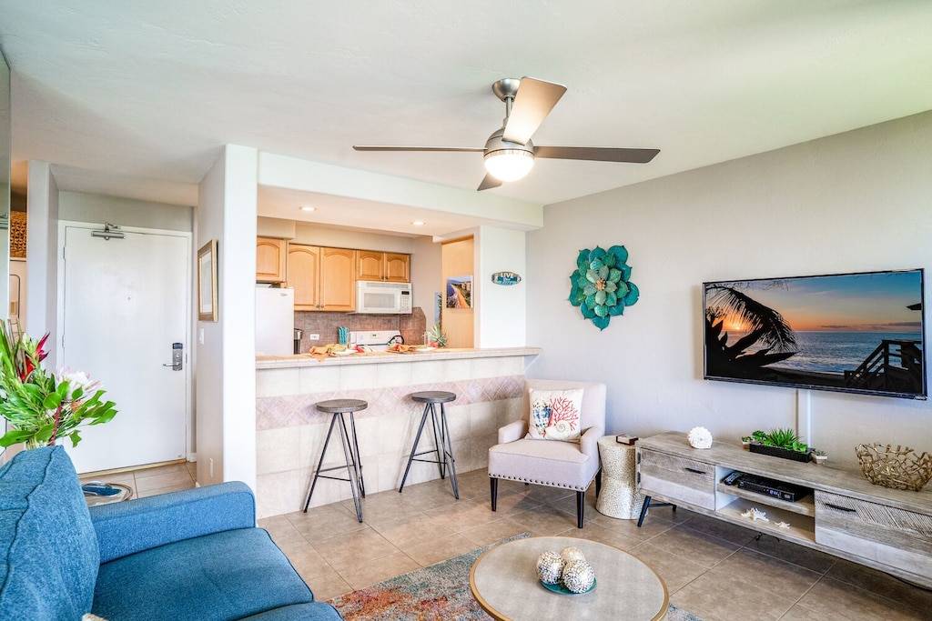 Views, views and more views! Enjoy views of the ocean, West Maui mountains and Kealia Pond National Wildlife Refuge from this gorgeous updated Penthouse condo at Kealia Resort. Enjoy and relax in this fully air-conditioned unit, beautifully appointed and stocked with everything you will need during your stay. Equipped with a new Flat Screen Smart TV and Digital Cable in the living room and free High-Speed Wireless Internet access.
