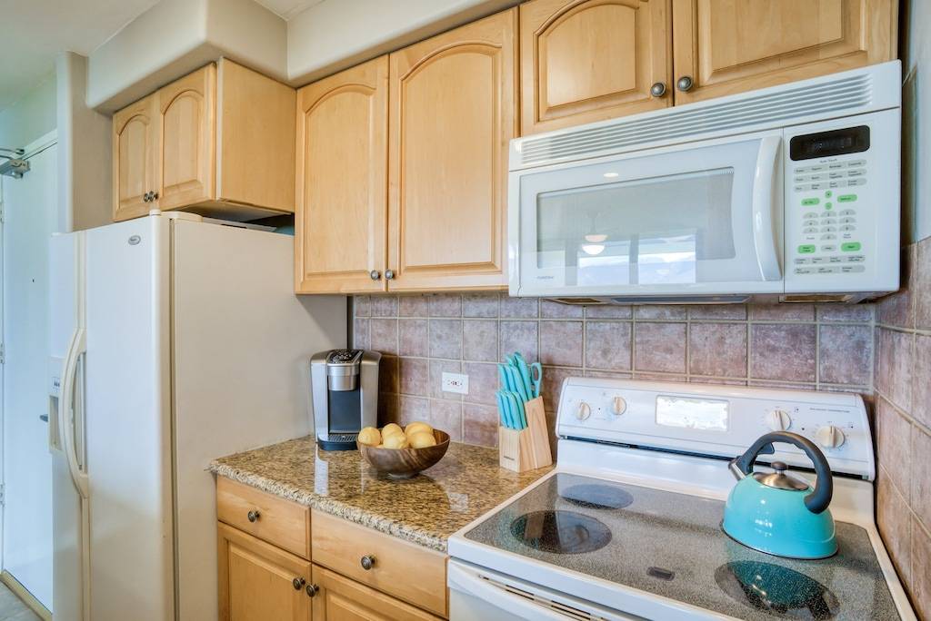 Enjoy your morning coffee on the lanai staring at the ocean. During Whale season (December-May) enjoy whale watching right from this lanai. Start your mornings and end your evenings with a gorgeous leisurely beach walk just steps from your room. Kealia Resort is a small complex located right on the ocean on Sugar Beach, South Maui’s longest beach. The beachfront location is perfect for enjoying a BBQ dinner as you watch the evening waves at sunset. Or enjoy a book under one of the large shade trees. Kealia Resort is the last condo complex on Sugar Beach until you get to Maalaea giving it a feeling of privacy rarely found on a beach front property. Kealia Resort is a non-smoking complex.