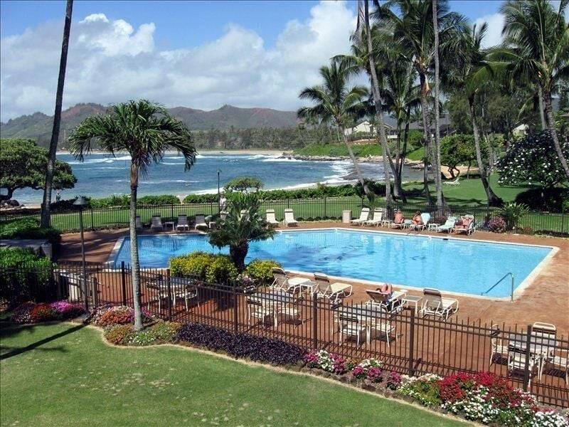 Is it time for you to leave the hustle bustle of your life and enter into your own paradise? That is what our condo offers you. Centrally located along the coconut coast of Kauai, surrounded by lush topical landscaping and exhilarating view of the ocean with a short walk to the beach or heated pool, paradise can be yours. Sit on our beautiful lanai and watch the Hawaiian sunset as not experienced anywhere else! Once in a while, you’ll see a local visitor; a giant green turtle or a monk seal resting and sunning on the beach in-front of our place in paradise. You can even catch your own meal by fishing, off the beach (please note, all the beach in the State of Hawaii is public). However, if you like to go deep sea fishing, we know the captain of a great charter-our guests loves and enjoy eating their catches. Enjoy a sun rise round of golf nearby along the shore, and be back for lunch and a swim in our heated pool. You could also spend some time at our tennis court, or barbeque next to the pool with a cocktail in your hand and watch the sun set.