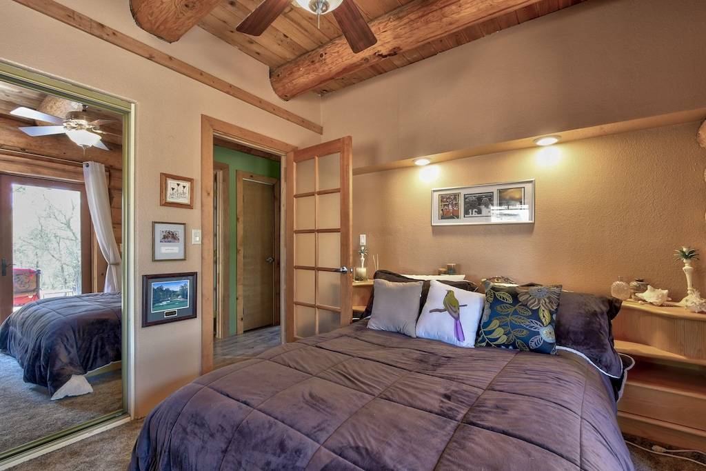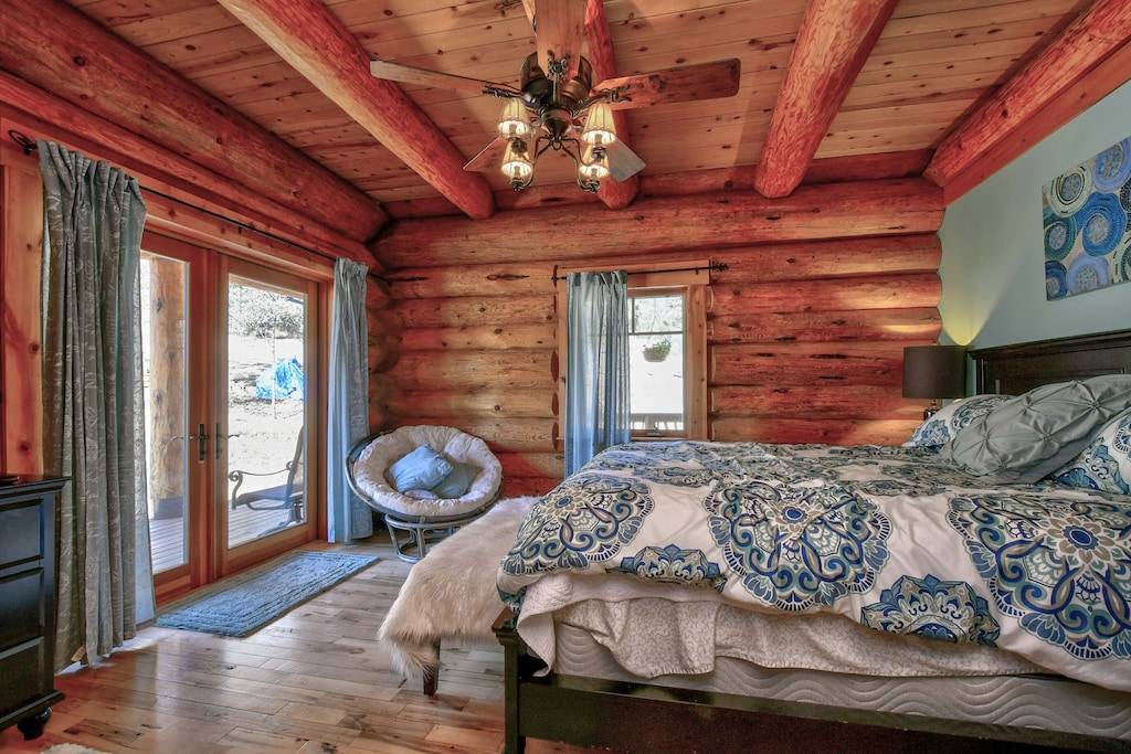 This luxury log home is made of hand crafted logs, large picture view windows, comfortable high end bedding and furnishings. The home is 3500 square feet on 2 levels. The six acre property has beaver ponds and a year-round creek. There is plenty of parking. The home has a wrap-around deck with outdoor dining and BBQ facilities. The 3 bedrooms are furnished with king size beds but extra twin beds can be added to 2 of the bedrooms for extra guests. We recently added an 850 square foot suite on the first florr of the property that adds 1 king bed and 1 twin bed , an additional full bath, sectional count and coffee service. This makes the house nearly 4100 square feet. This additional suite is $50 per night or is automatically added and charged the same amount when you have 8-10 guests. The property is completely organic and has never had harmful chemicals applied. The logs are not stained on the inside but polished with organic oils.