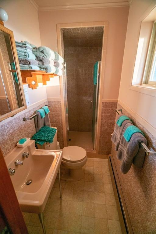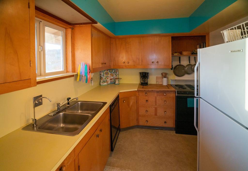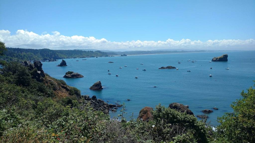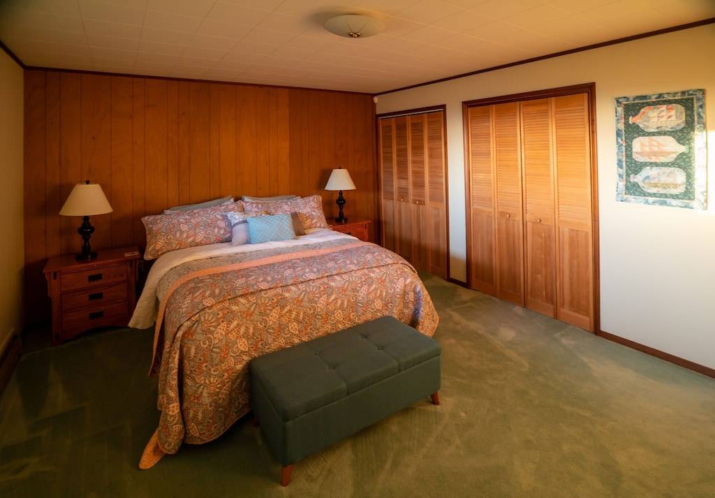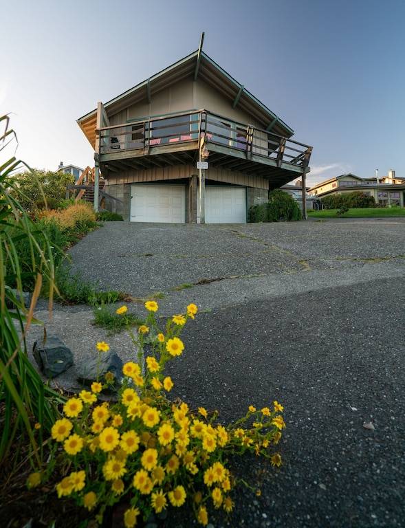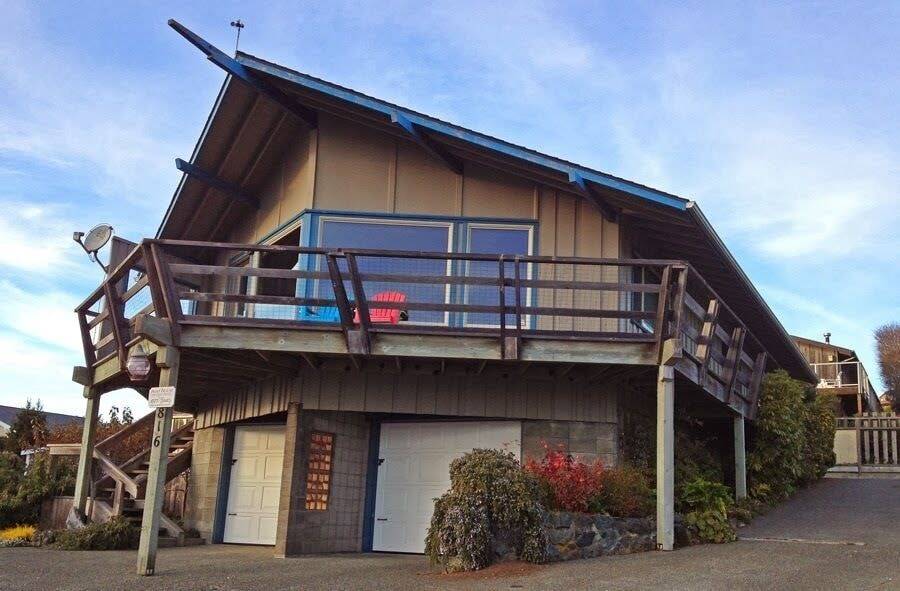 Spacious living room with wall-to-wall windows overlooking Trinidad Bay and south to Eureka and Cape Mendocino. The house is equipped with WiFi and a 45′ flat screen LCD tv. There is a wraparound deck facing the ocean, the perfect place for a barbecue! The house is located at the end of a road at a quiet location. You can watch the whales from the comfort of the couch when they come by Trinidad.