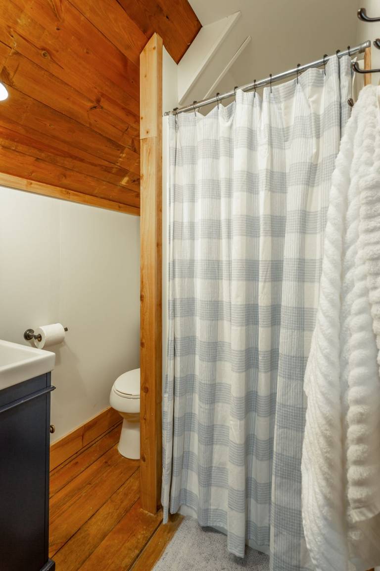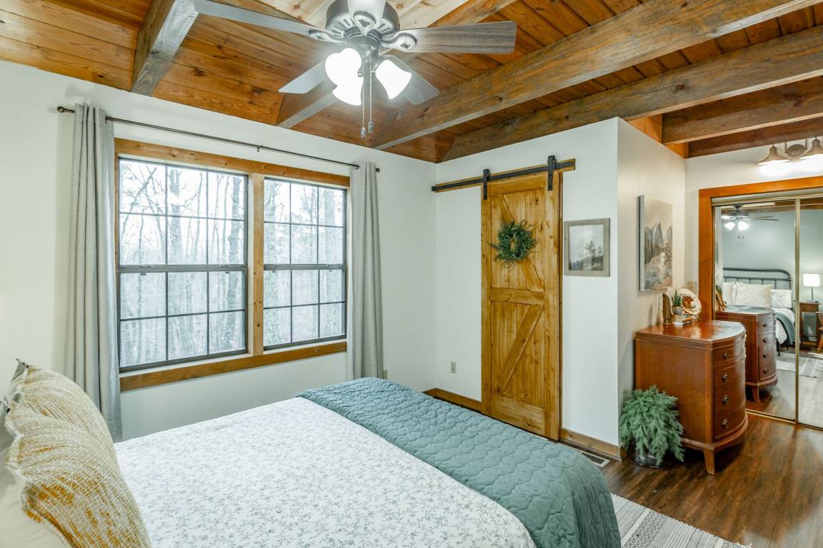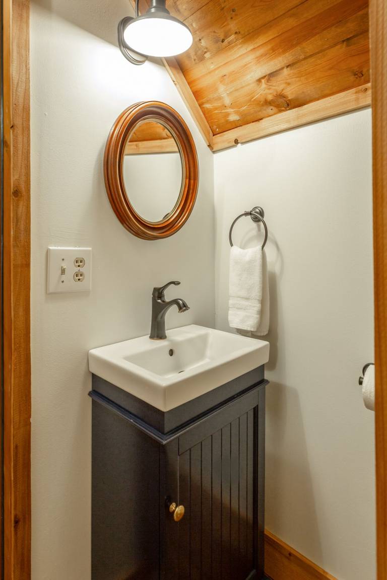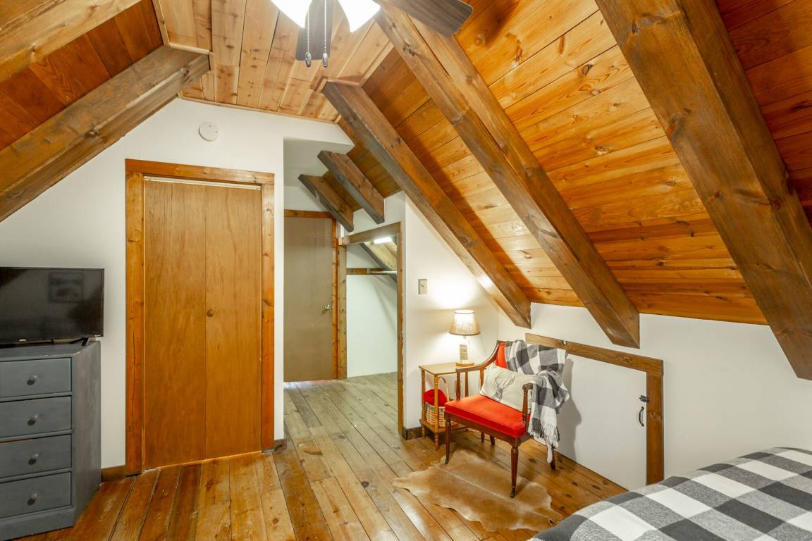 The master bedroom, kitchen, dining area, great room, full bathroom, front porch, screened patio, and parking are all on the main level. Two full beds are located in the loft bedroom. The loft bedroom has it’s own full bathroom. The third bedroom, half bath, and laundry room are located in the basement. The basement has it’s own exit.