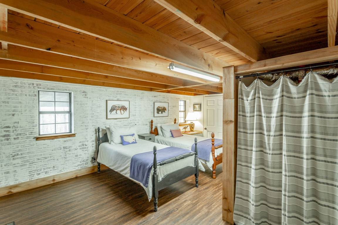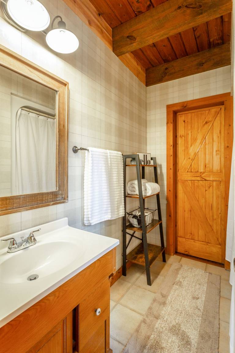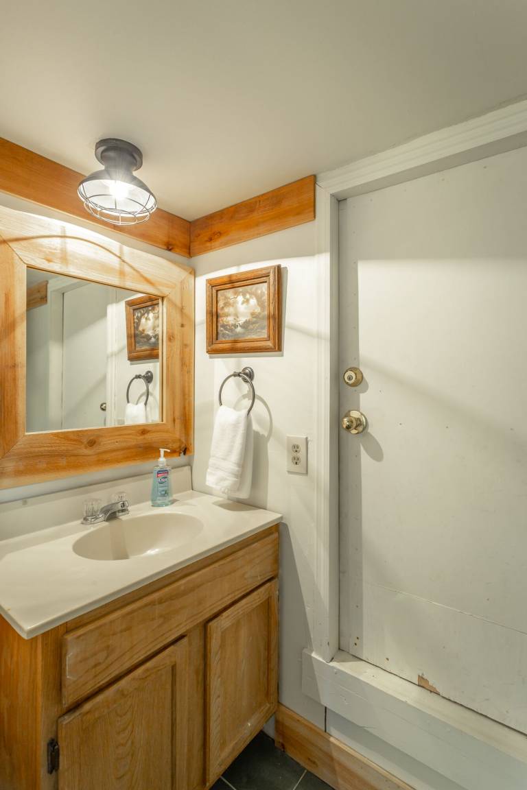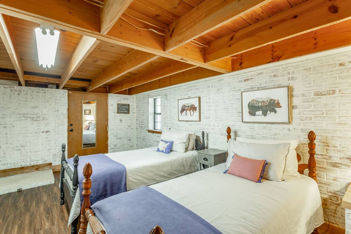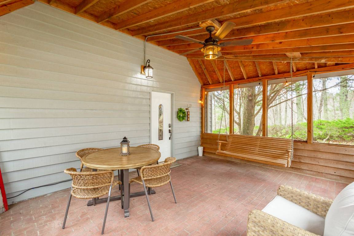 The master bedroom, kitchen, dining area, great room, full bathroom, front porch, screened patio, and parking are all on the main level. Two full beds are located in the loft bedroom. The loft bedroom has it’s own full bathroom. The third bedroom, half bath, and laundry room are located in the basement. The basement has it’s own exit.