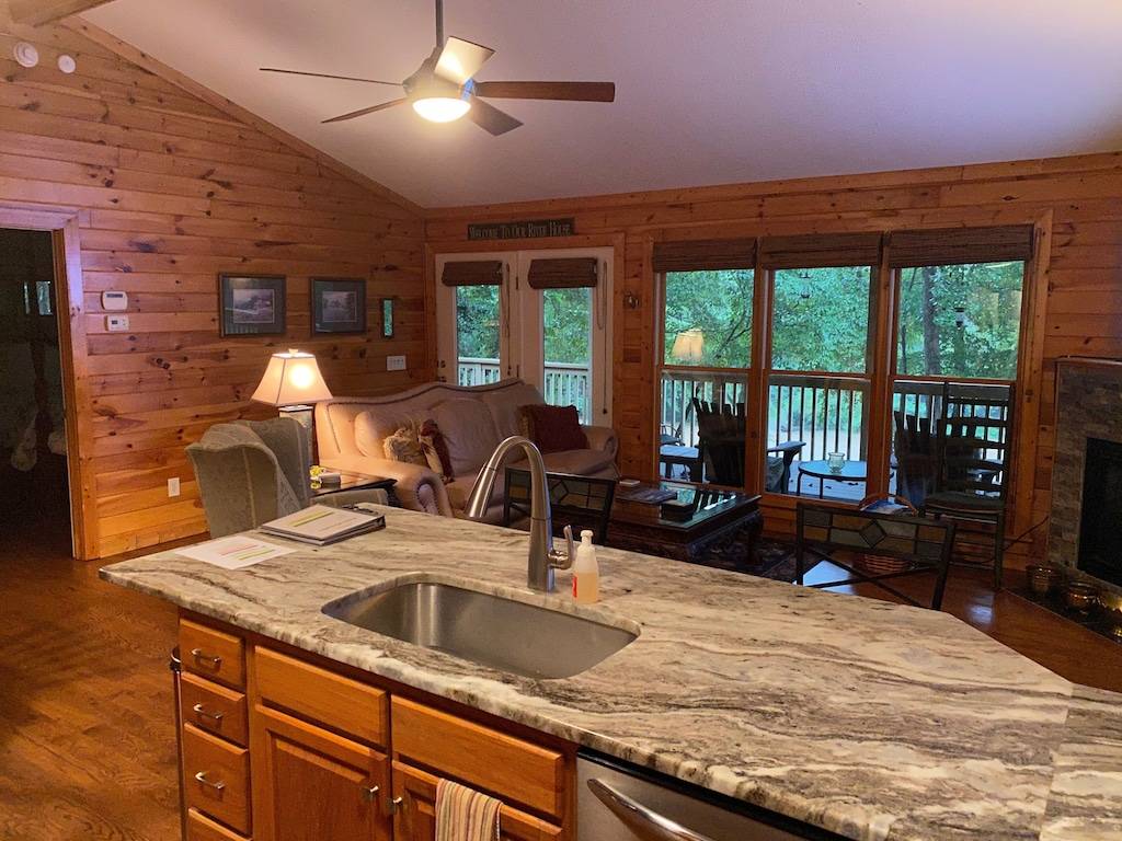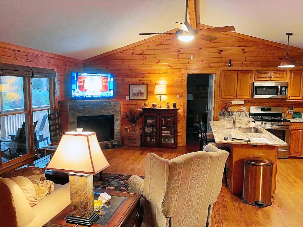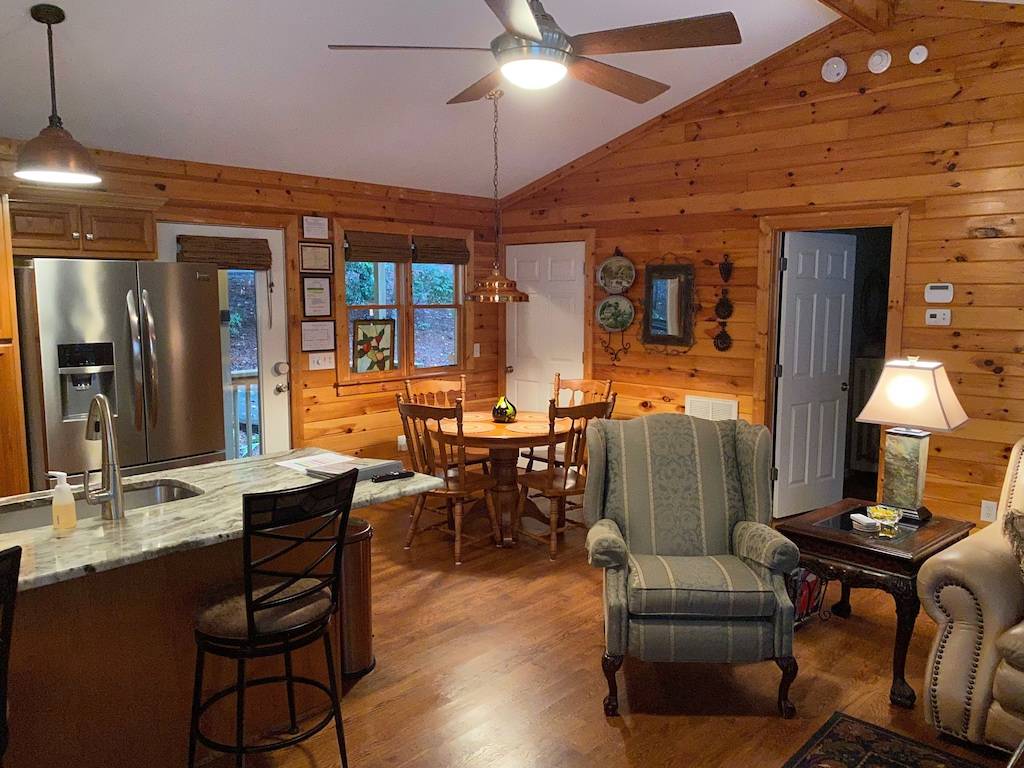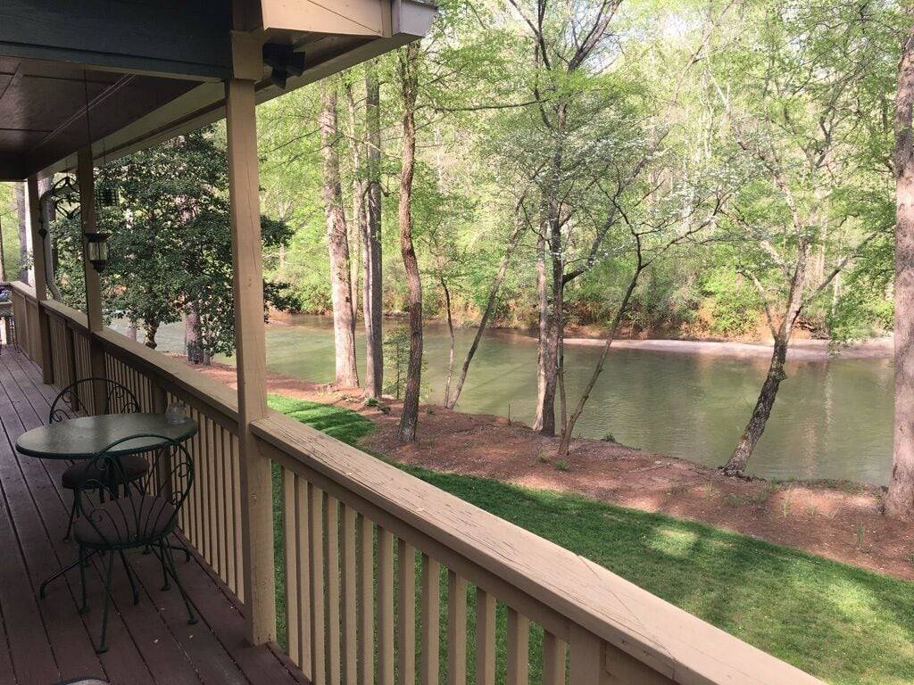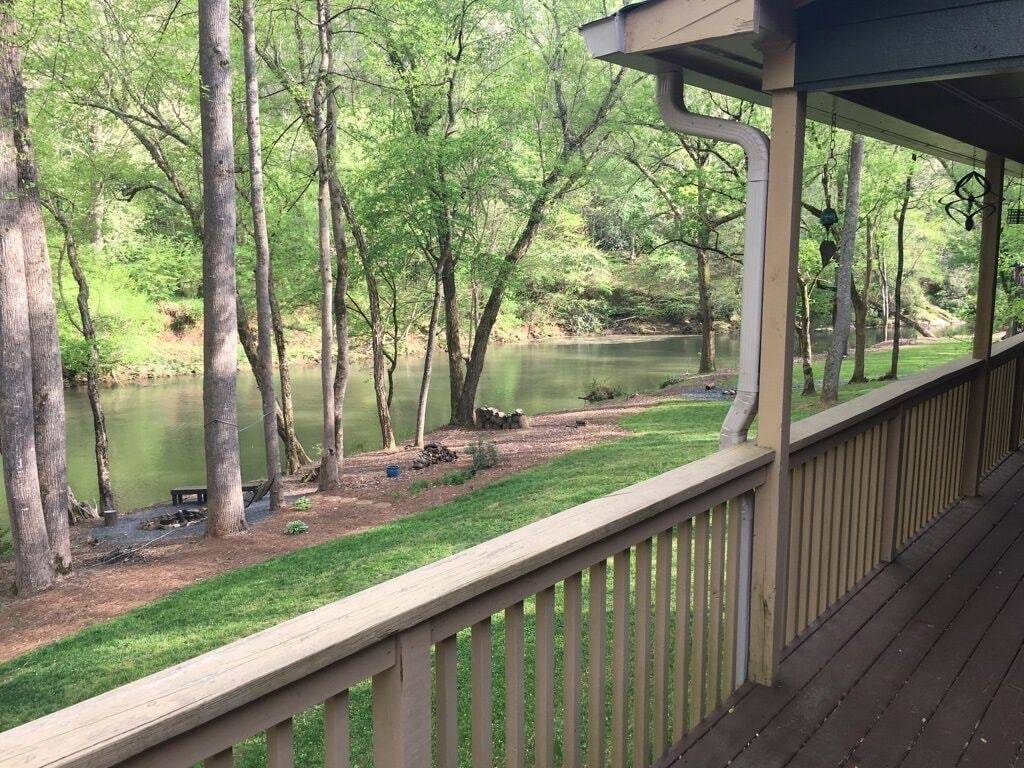 This adorable riverside home on the Chestatee is just minutes from historic downtown Dahlonega, wineries and wedding venues. Only 7 miles from GA 400, the location is central to everything you would want to do and see. Enjoy the scenery and wildlife from the large covered deck, rain or shine. You can hear the peaceful sound of nearby rapids from the deck. Songbirds, as well as duck, blue herons, deer and the elusive river otter make an appearance from time to time. No Smoking Indoors, NO Pets & NO Parties or Events.