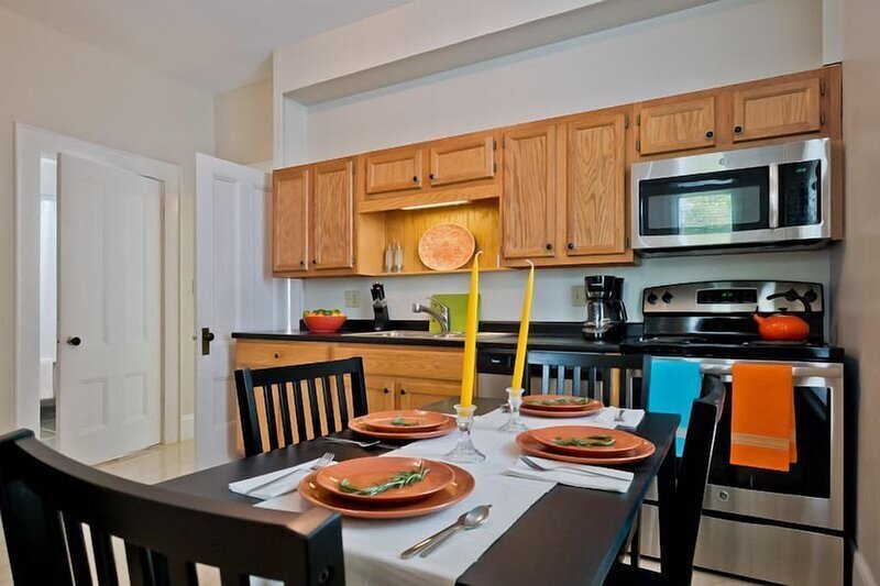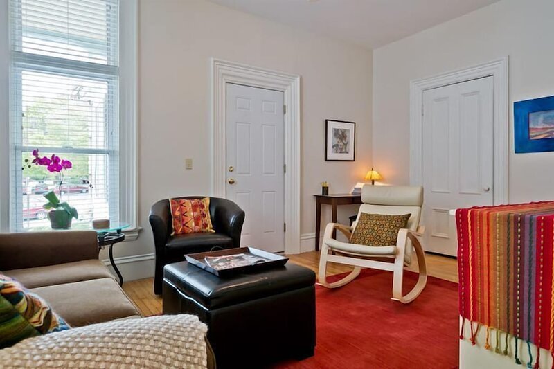 This beautifully furnished one bedroom apartment for 4 is on the first floor of a historic 1880’s building. Completely renovated but the charm of original hardwood floors and spacious kitchen and living room. The kitchen has been remodeled with stainless appliances and tile floor. Bathroom has tile floor and a brand new tiled shower. Wi-fi and cable television. There is a charming outdoor space with seating area to relax and enjoy a glass of wine or cup of coffee. We are located within minutes to Portland Art Museum, numerous restaurants of all types, museums, several wonderful music venues and downtown Congress Street. We are within walking distance to Hadlock Field, home of the Portland SeaDogs, and the Old Port District, noted for its upscale shops and eateries. We are a 5 minute wal…More