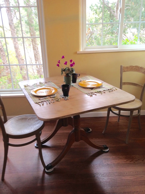 A gas fireplace provides a delightful bit of evening heat. The living room opens on to a sunny deck for your morning coffee and a grill if you desire an evening meal at home.