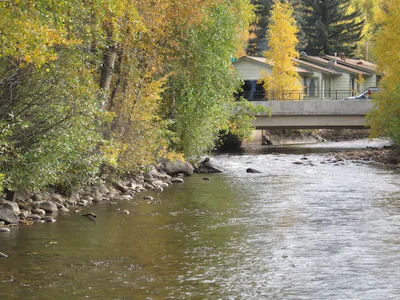 Very convenient location – walk across the bridge to restaurants, shopping and Estes Park festivals. Follow the creek on the relaxing river walk. This is a downtown location, if you are sensitive to car and people traffic, please look elsewhere.
