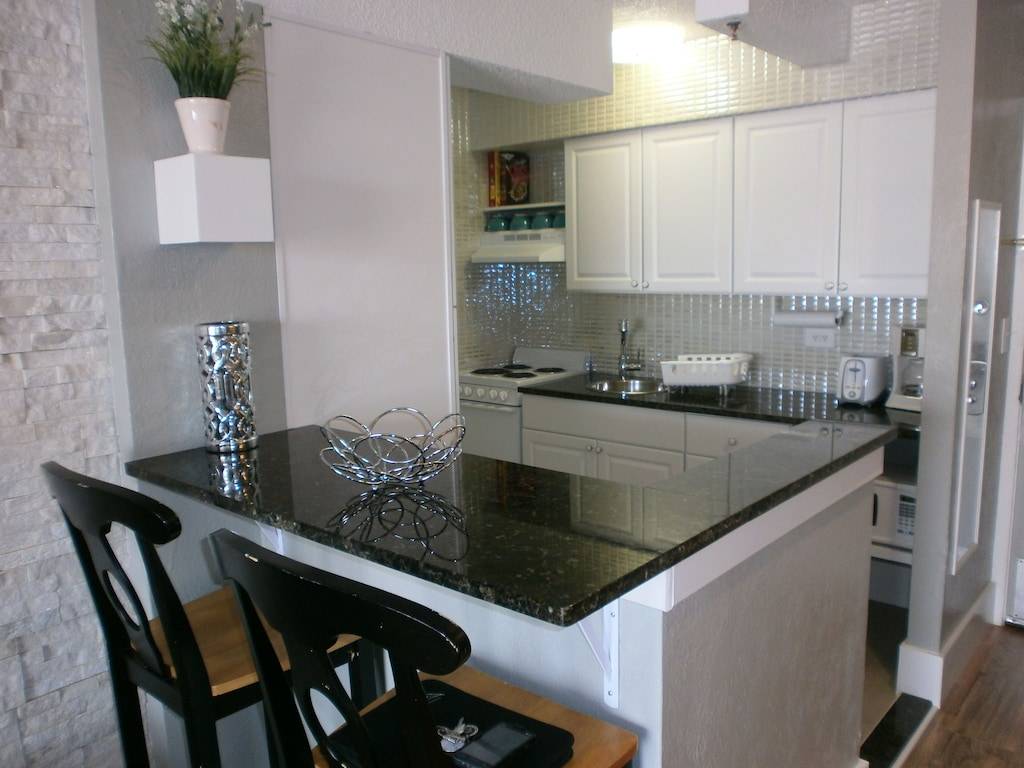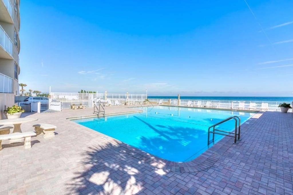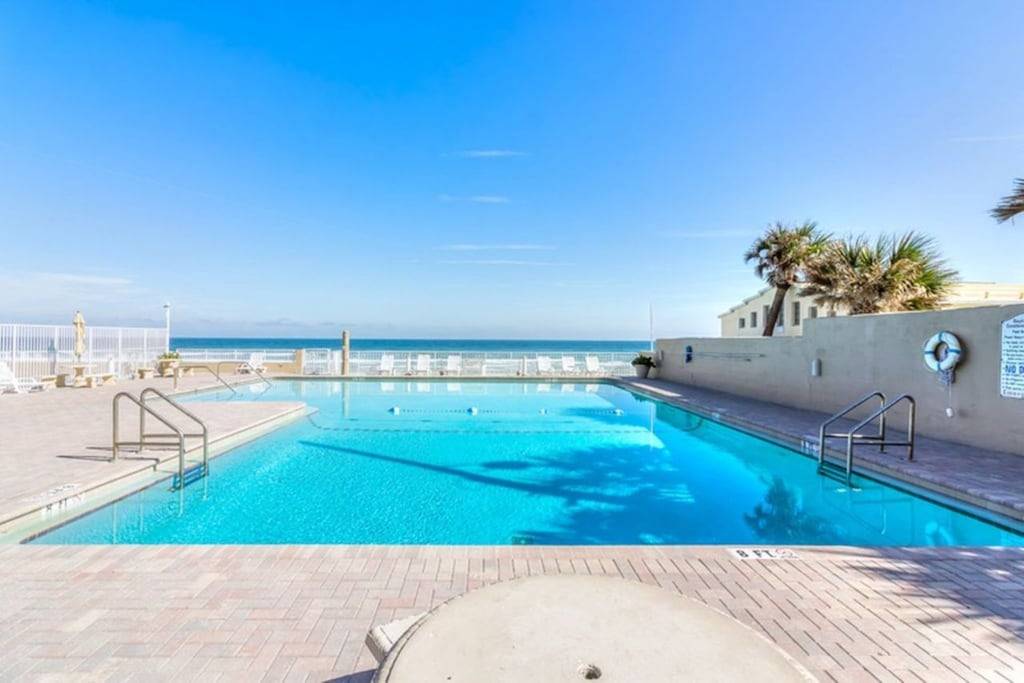 Although the building and the unit came through Hurricane Nicole ok the sea wall collapsed allowing part of the pool and pool deck to collapse onto the beach below. Currently the pool, pool deck is closed. Also there is no access to the beach from the pool deck. As of now 5/6 the public beach access next to the building is now open, so you can go down the second floor parking garage ramp out to the beach. Hopefully that will continue. Please make sure you are ok with this before booking the unit. If you inquire about the unit we will give you updates. Because of this we will not be raising the rates as planned so the current low rate will remain in effect. 1/9/23 Update. Expect the pool to be closed and other above damage to last all through 2023. Expect ongoing repairs, construction and level 1 parking garage off/on closures also. Please be aware of this and be okay with it BEFORE booking the unit. Your jaw will drop when you open the door and get your first look at this newly remodeled condo! This unit has been completely redone. The pictures will show you the attention to detail that was put into this unit. The living area boasts a contemporary double size sleeper sofa which you will really appreciate when it comes time to chill out and watch the new 50in. flat screen TV. A new King Size bed will help you sleep and recharge after a fun filled day at the beach or huge pool. A fully equipped kitchen has all your essential supplies. Glassware, utensils, dishes, coffee maker, toaster ect. Not a small kitchenette but a full size kitchen has a full size refrigerator/freezer and 4 burner stove/oven plus a microwave. Daytona Beach Club is located directly on the ocean. The unit is a side view studio unit. Enjoy both city view and ocean view from your private balcony from this 5th floor unit conveniently located next to the elevator. Walk right out to the beach or enjoy the view from the beachfront patio and large pool. Please note that the washer and dryer are located right at the foot of the second elevator on the first floor. Within walking distance you can find movies, Main St. fishing pier, shopping and boardwalk amusement park. Disney World, Sea World and all of the famous Orlando attractions are only about one hour away. Other close by attractions are the Kennedy Space Center and Old historic St. Augustine. Daytona Beach club is 10 minutes away from the famous Daytona International Speedway. and the Daytona Beach International Airport.