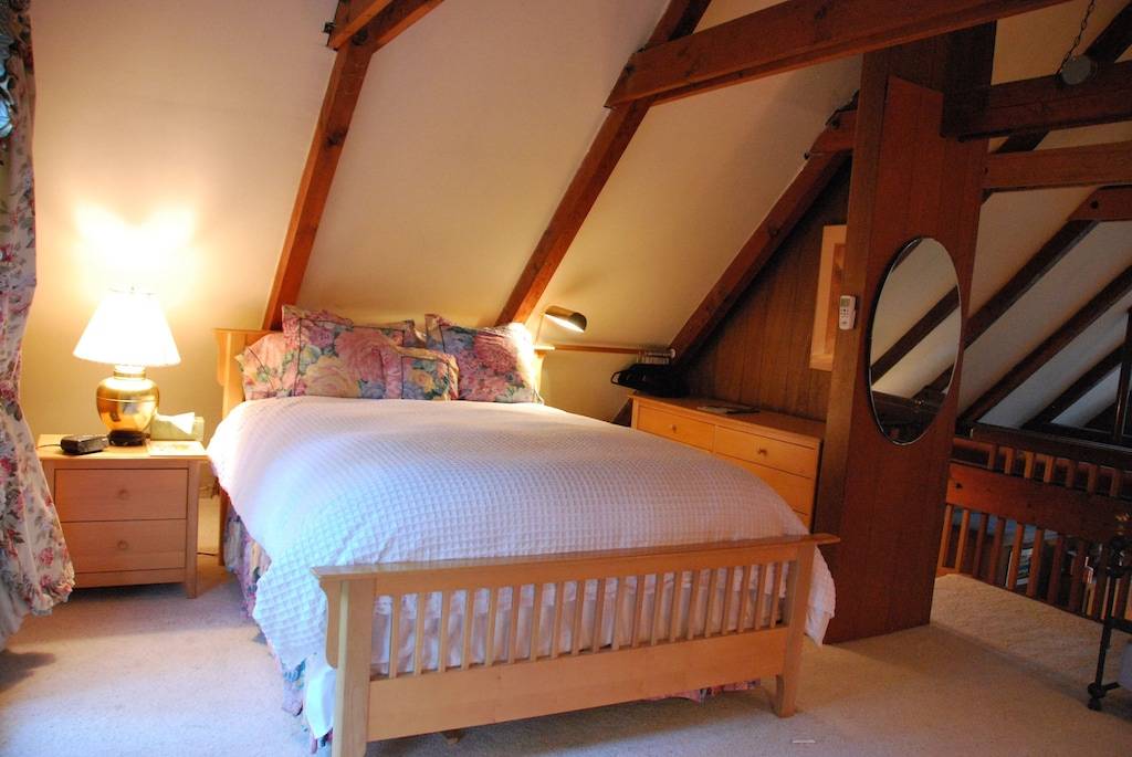 It is comfortably, completely equipped for cooking, entertaining, and relaxing. The loft “master bedroom” has a queen bed, a day bed with trundle, and a private balcony. The second bedroom has a double (full size) bed. The living room sofa is a hide-a-bed.