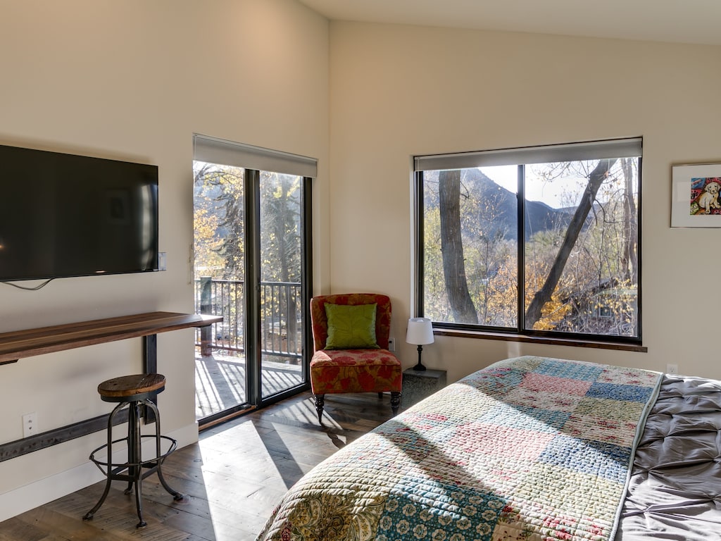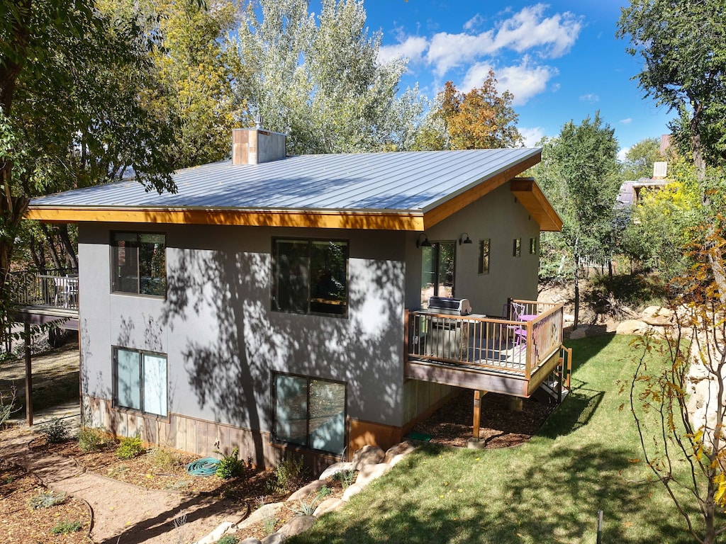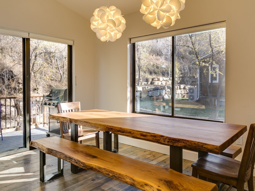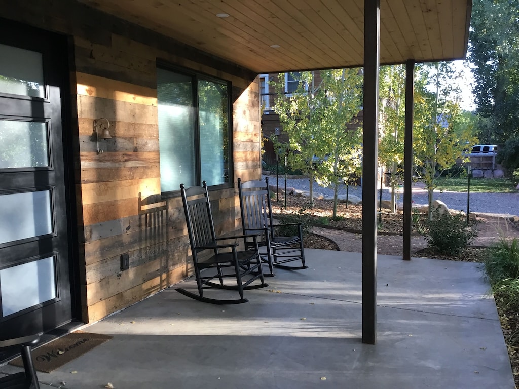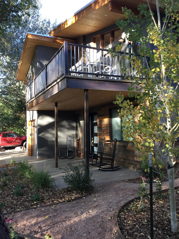 Designed and built from the ground up as the ultimate vacation home base, the Durango Hideout is equipped with air conditioning as well as indoor-outdoor living spaces. The house features a front deck with a dining table and views overlooking the mountains for long, lazy nights of socializing as well as a back deck with a grill and a shady porch with rocking chairs. For large groups, this house is conveniently right next door to the Treehouse, a three-bedroom vacation rental that sleeps 10 (vrbo #312061). Another house that we own downtown is the Carriage House that sleeps 7 (vrbo# 409501)