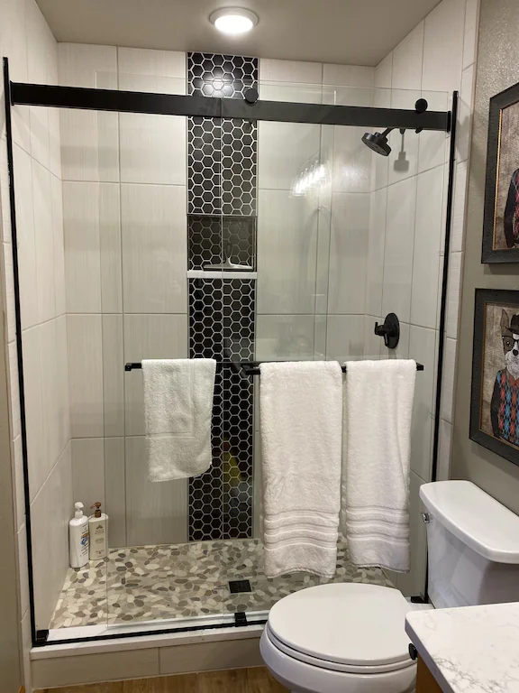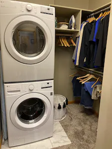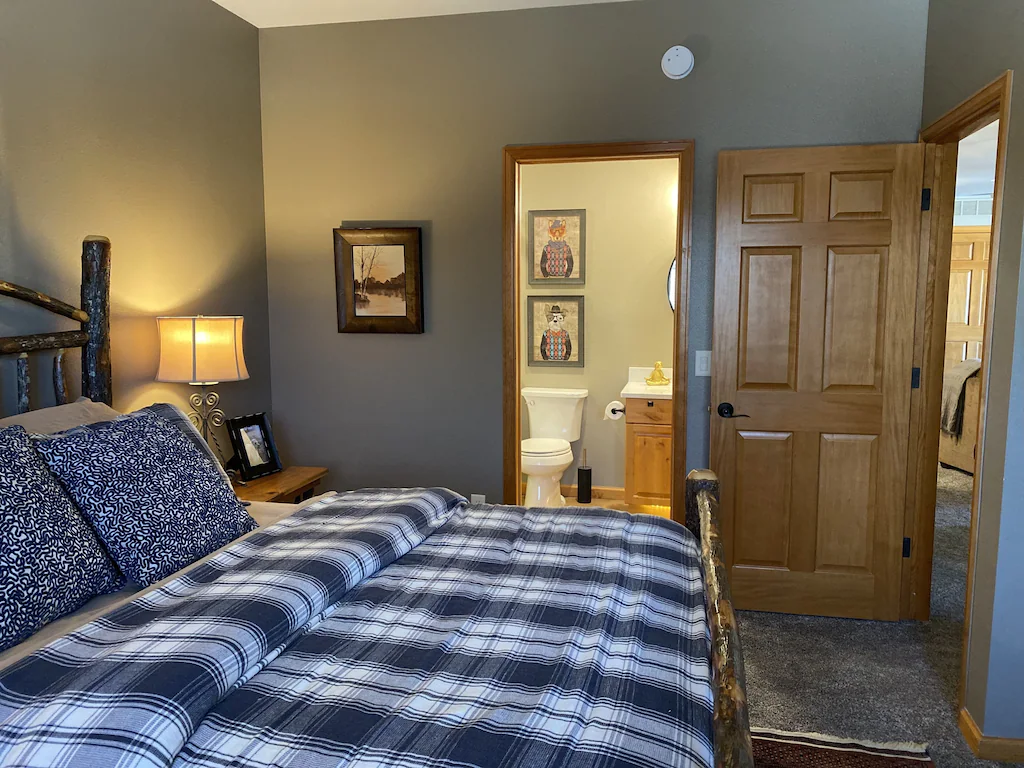 This spacious home invites up to eight guests to enjoy an unforgettable nature retreat. There are three bedrooms, three full bathrooms, and one half bathroom for all to enjoy comfortably. The primary bedroom boasts a gorgeous king-size bed and an ensuite bathroom with a water closet, 2 person soaking tub, a 2 person grand shower, and walk in closet with a washer and dryer. Guests will find a luxurious queen-size bed in both the lower level second and third bedrooms. One bedroom has a private ensuite bathroom with a walk-in shower. The second full bathroom is in the lower level and offers a bathtub and shower combination along with a second washer and dryer. Fresh linens and towels are provided to guests during their stay.