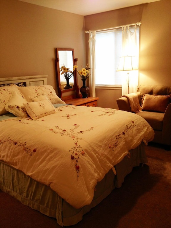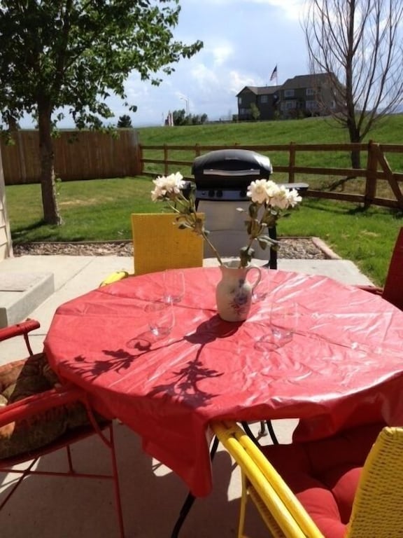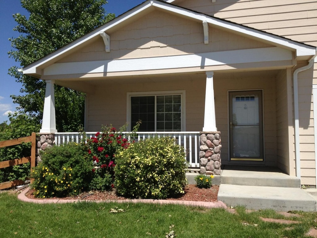 Single family cozy cottage home in excellent location. Quiet neighborhood cul-de-sac backs up to open green space with an incredible view of the majestic Rocky Mountains. Have your morning coffee on the comfy front porch. Enjoy your evenings grilling on the back patio. Private fenced back yard for the children or to play fetch with Rover. There’s even a stereo system in the kitchen to liven up meal time! Come and RELAX!