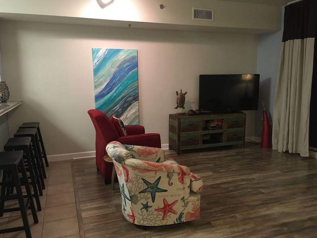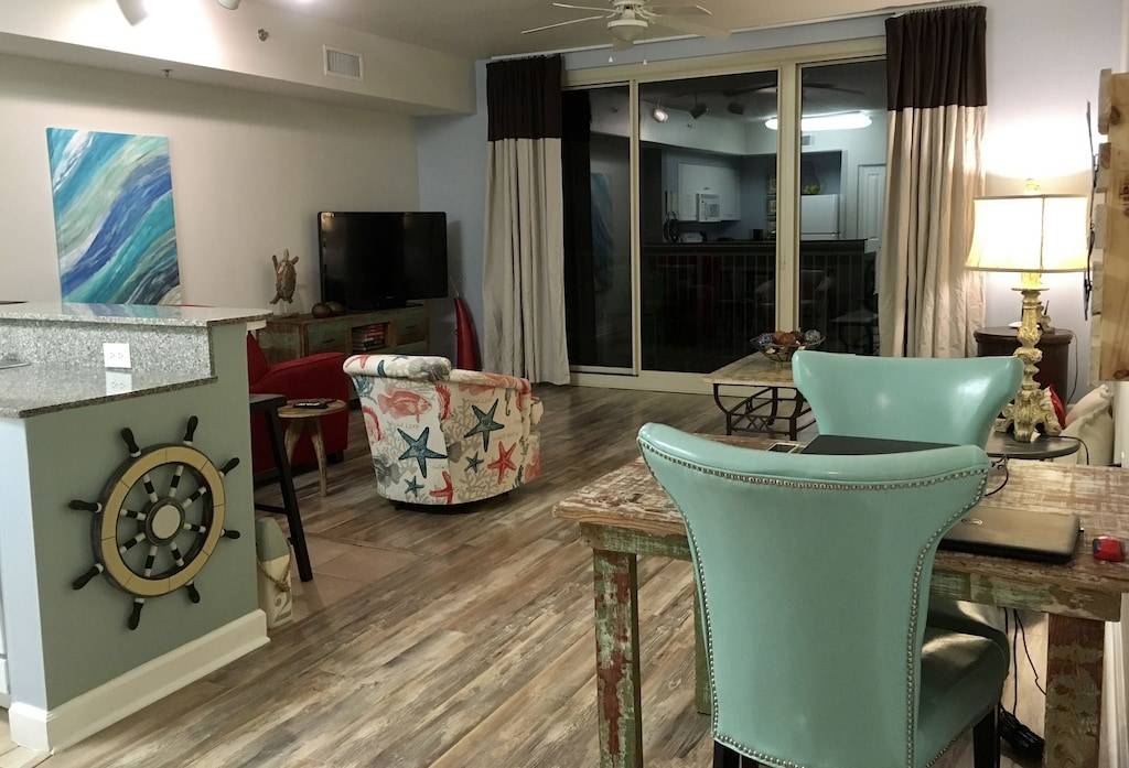 The Shores of Panama is one of the top resorts on the Gulf Coast. Our professionally decorated 5th floor unit is very clean and well kept as stated in several of the reviews by the families that stayed in the condo before. It is the largest of the 1 Master Bedroom/1 Bunk-Bed room/ 2 Bathroom floors plans. It has a balcony view to the ocean where you can enjoy the sunset and the resort pool.
