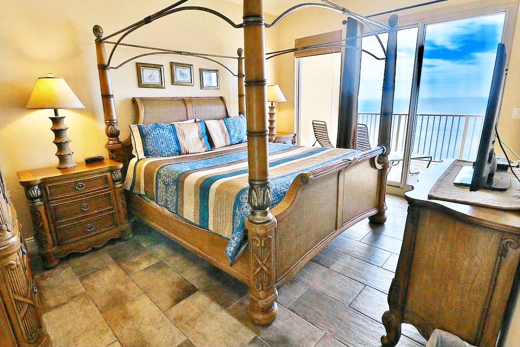 -Master Bedroom has KING bed, flat Screen TV, and private balcony access