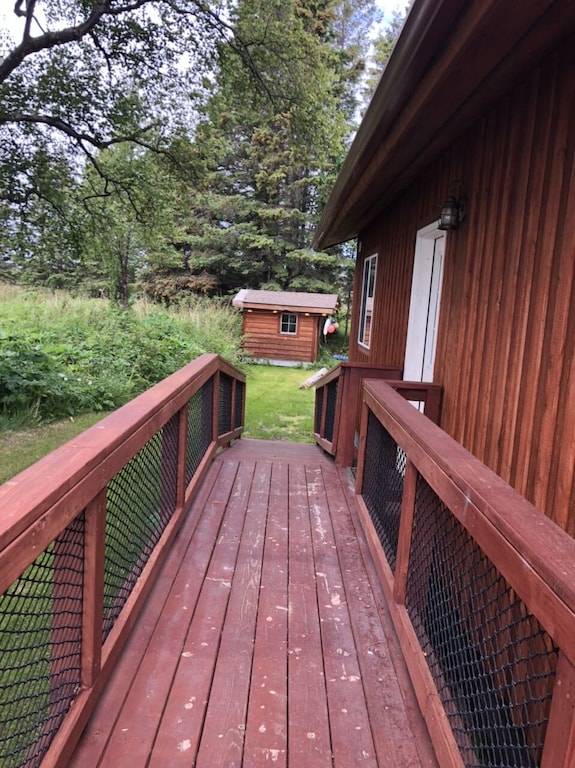 The deck in the front of the cabin offers a great view of the beach and wildlife