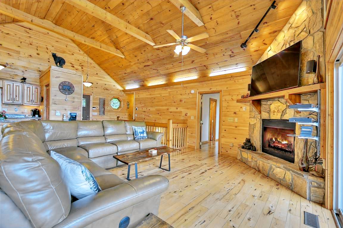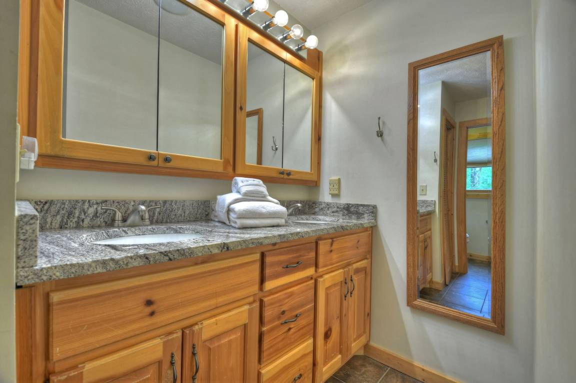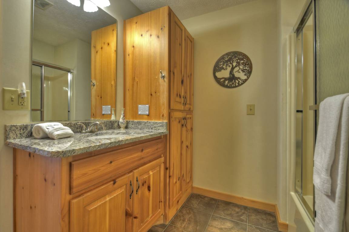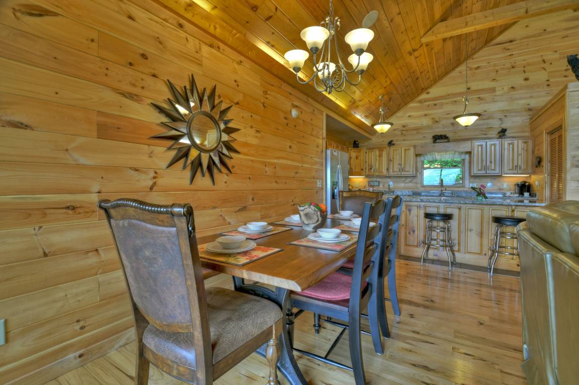The kitchen is fully equipped with all the necessities and more. Gorgeous granite counter-tops and upgraded appliances make cooking your meals a dream come true. After a full dinner of fresh caught Georgia Trout, local grown veggies and a bottle of wine from one of the many North Georgia Wineries, you will be ready to head down to the terrace level for some friendly competition. Grab a pool stick, pick your partner and play a few games of pool. This luxury Ellijay cabin rental comes with all the essentials you will need to have a fun and relaxing North Georgia getaway with the whole family.