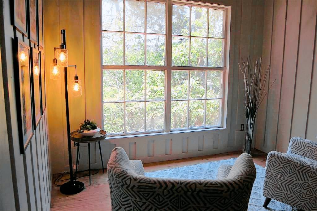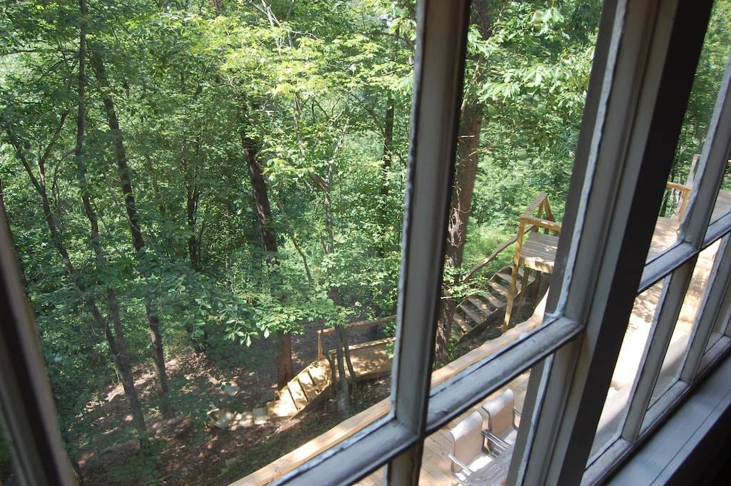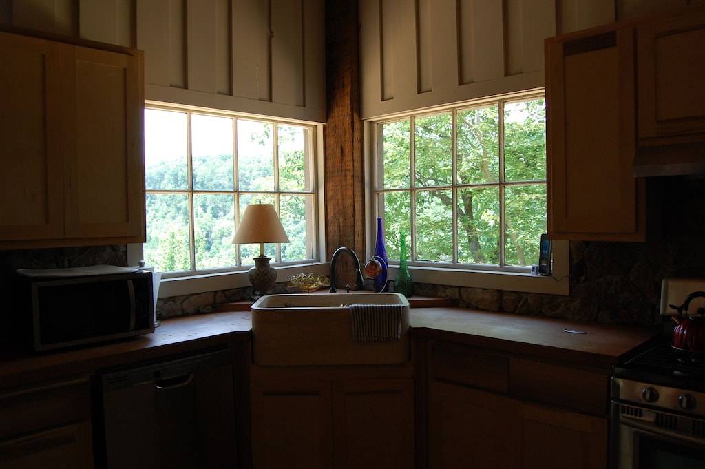 – Floor to ceiling windows offer a magnificent view of the canyon, through reclaimed hand-blown glass windows sourced from one of the oldest courthouses in Tennessee