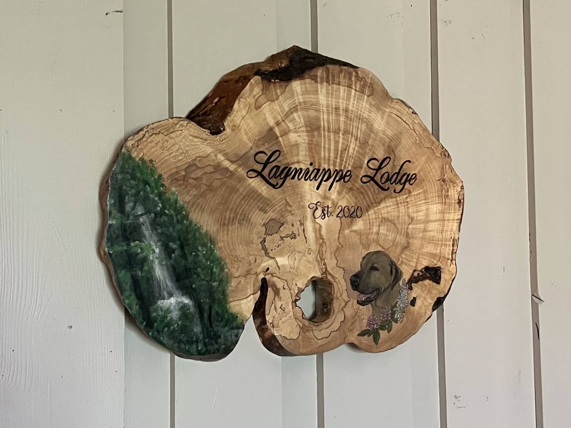 The Lagniappe Lodge is a 3,000 sq foot, 2-bedroom, 2.5-bathroom cabin with a spacious loft and can sleep 8 guests comfortably. The entire cabin consists of an open floor plan with multiple sitting areas to relax and visit. The cabin is filled with special architectural features, including: