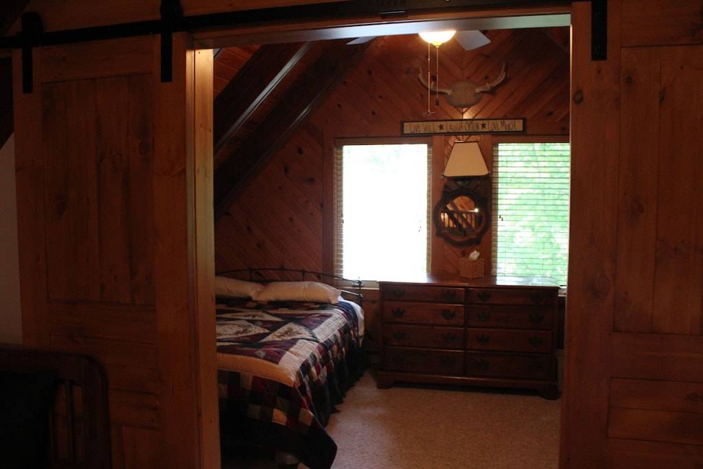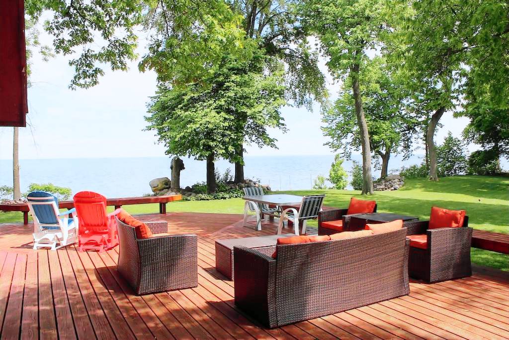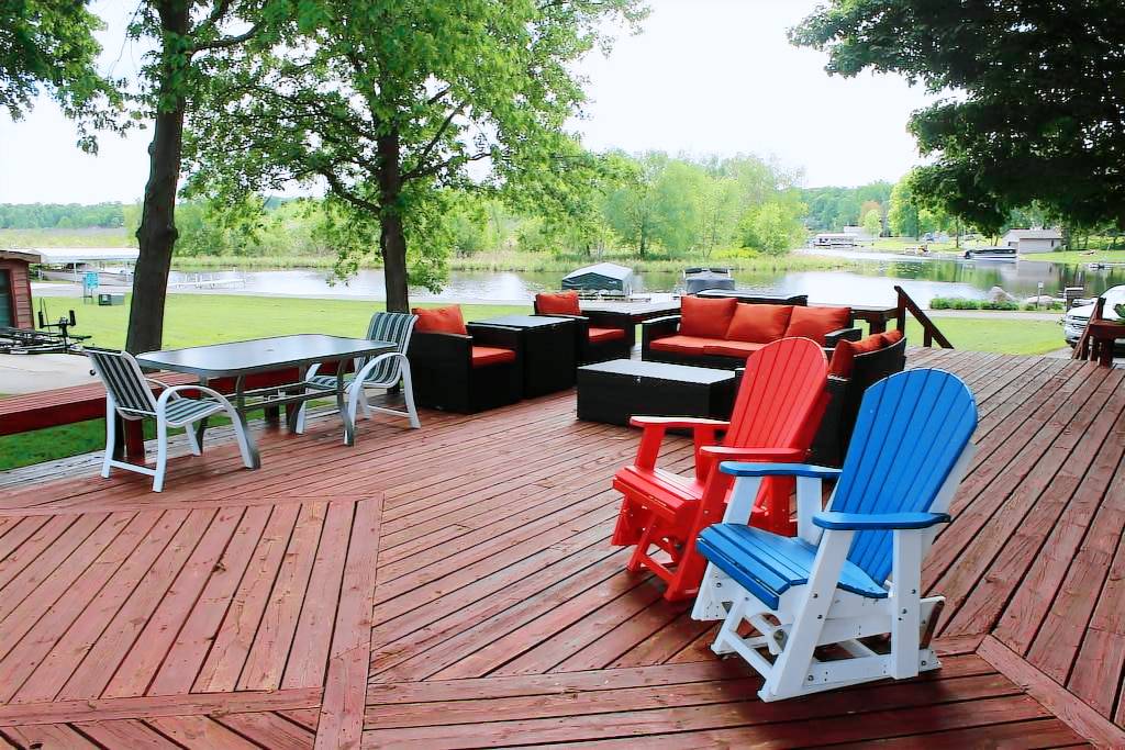 Outside a huge deck with Amish gliding rockers, newer outdoor furniture and a Weber gas grill so you can have a nice cook-out. Very nice large lake rock fire pit for roasting marshmallows, cold drinks and nice conversation. Might as well use the beautiful spacious yard to play a few games (lawn games included, bags and bocce ball). Two 12-foot kayaks are in the garage, both are fishing/cruising type, you sit comfortably on top not inside. We also have some easy-to-use fishing poles and tackle in case you forget or break your own.