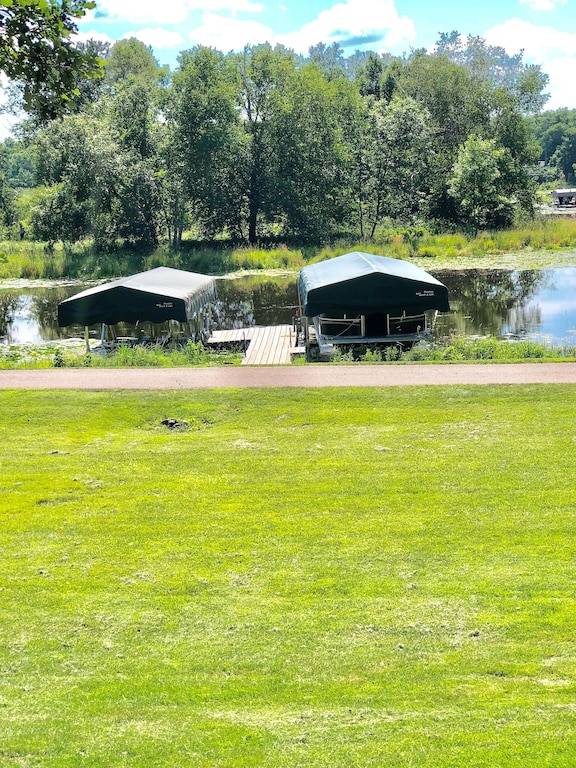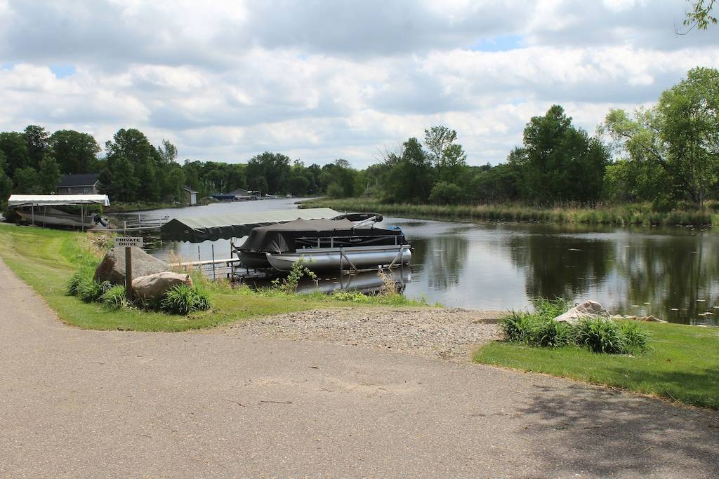The property includes your own private boat launch and remote-controlled 5000 lb. electric hoist with a canopy for your personnel use. The private boat launch is 30 feet from your hoist. Both the private launch and hoist are located on187 feet of the canal which is part of the property. This ensures EXCELLENT protection for your fishing or runabout boat. Next to the boat hoist is a nice 24-foot South Bay pontoon with a 90hp 4-stroke Mercury, you can fish or pull water toys easily, if you’re interested in the pontoon just call us. We provide life jackets and some water toys to pull behind your boat or ours. The boat ride in the canal is a short distance (1-2 mins) to the lake and as a bonus, the canal can be good for fishing.