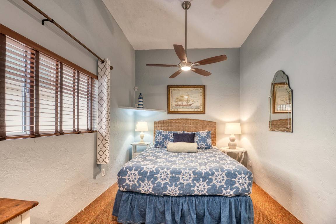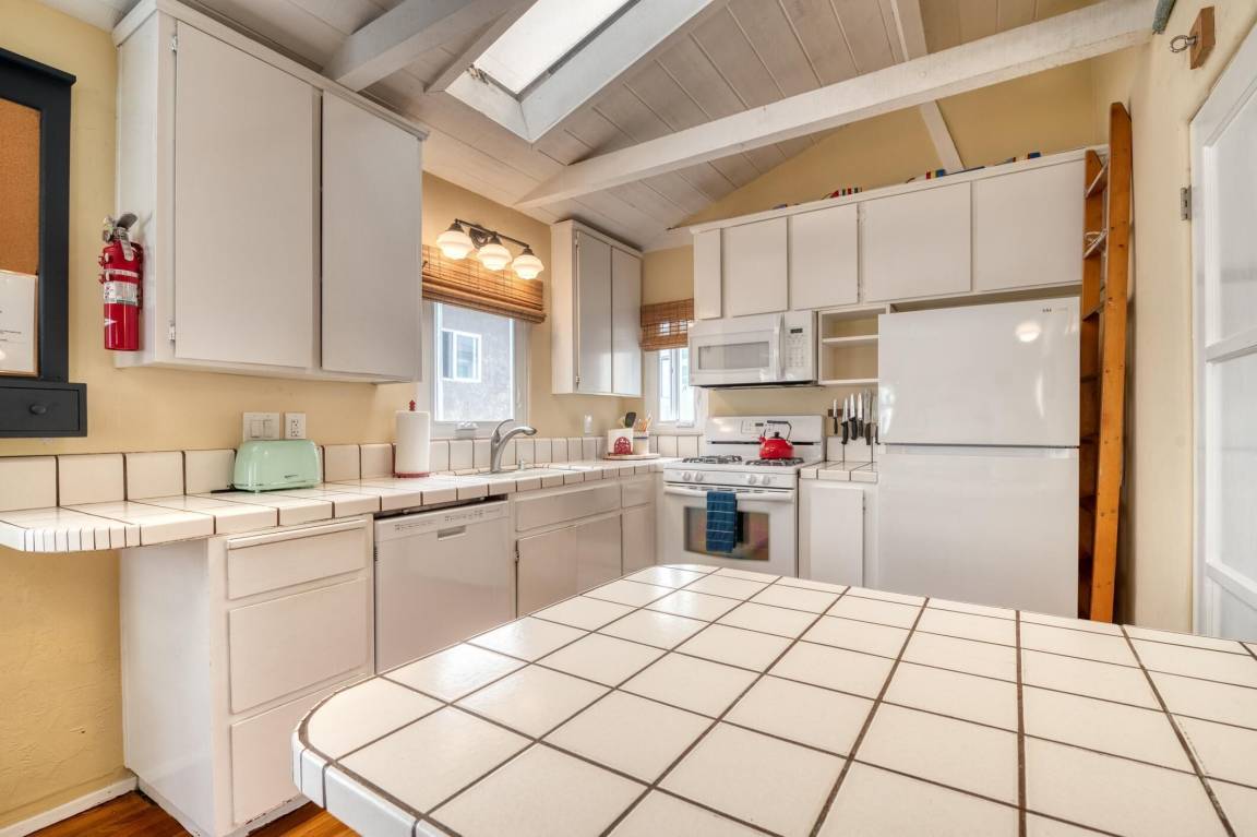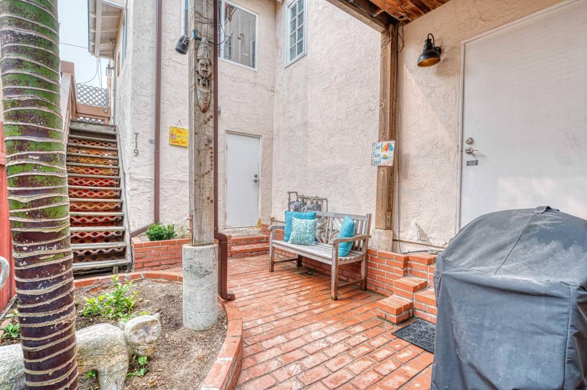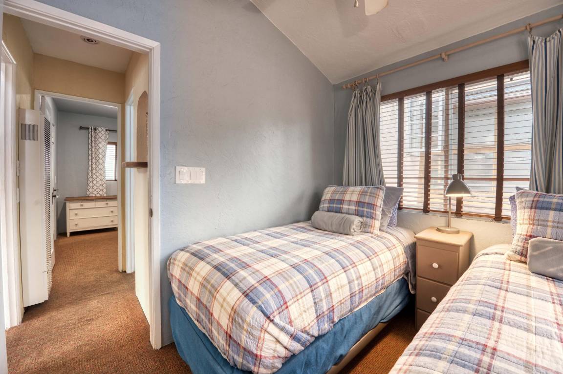 The Dollhouse” is a guest apartment located over the garage of a lovingly maintained home six blocks north of Belmont Park on one of the loveliest courts in Mission Beach. Located just steps away from the Pacific Ocean, this charming and highly rated vacation rental sleeps 5 making it a perfect retreat for singles, couples, and small families. Built in the 1930’s, the dollhouse features original wooden floors and other charming features.