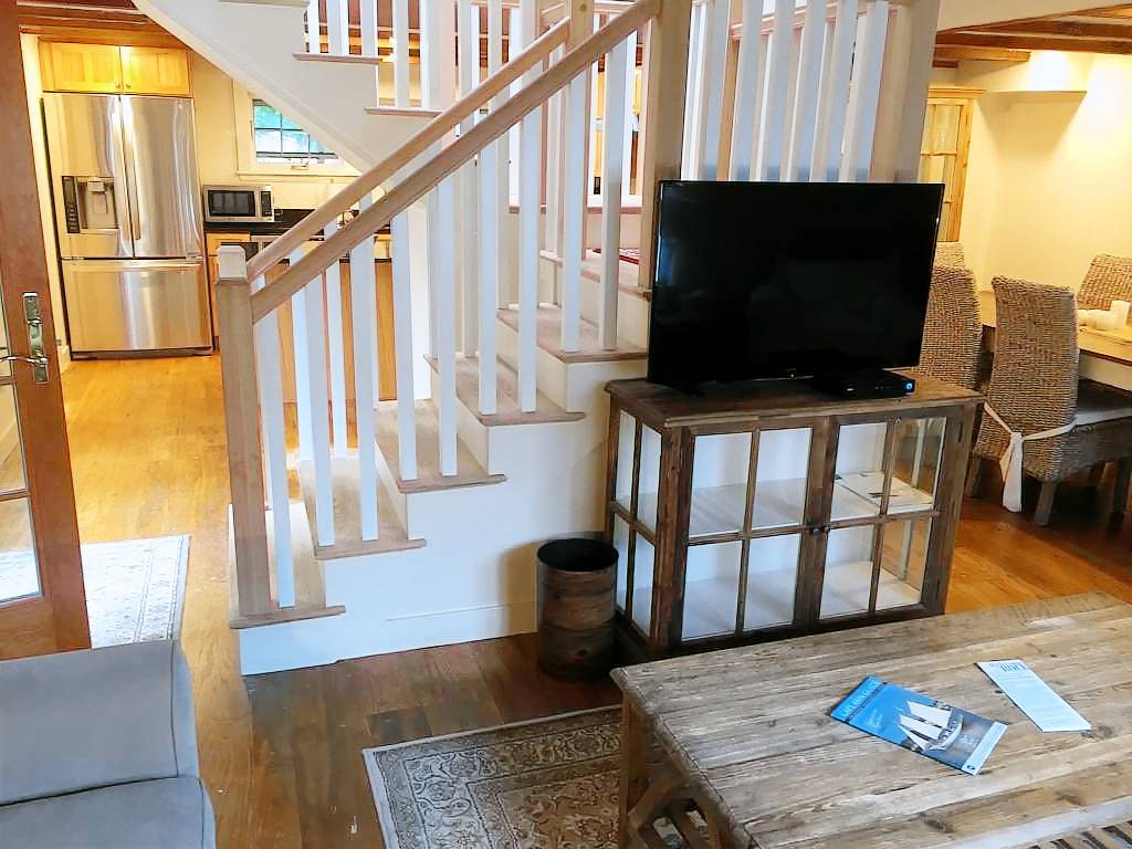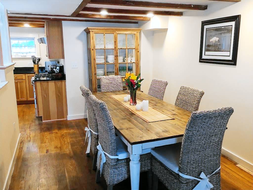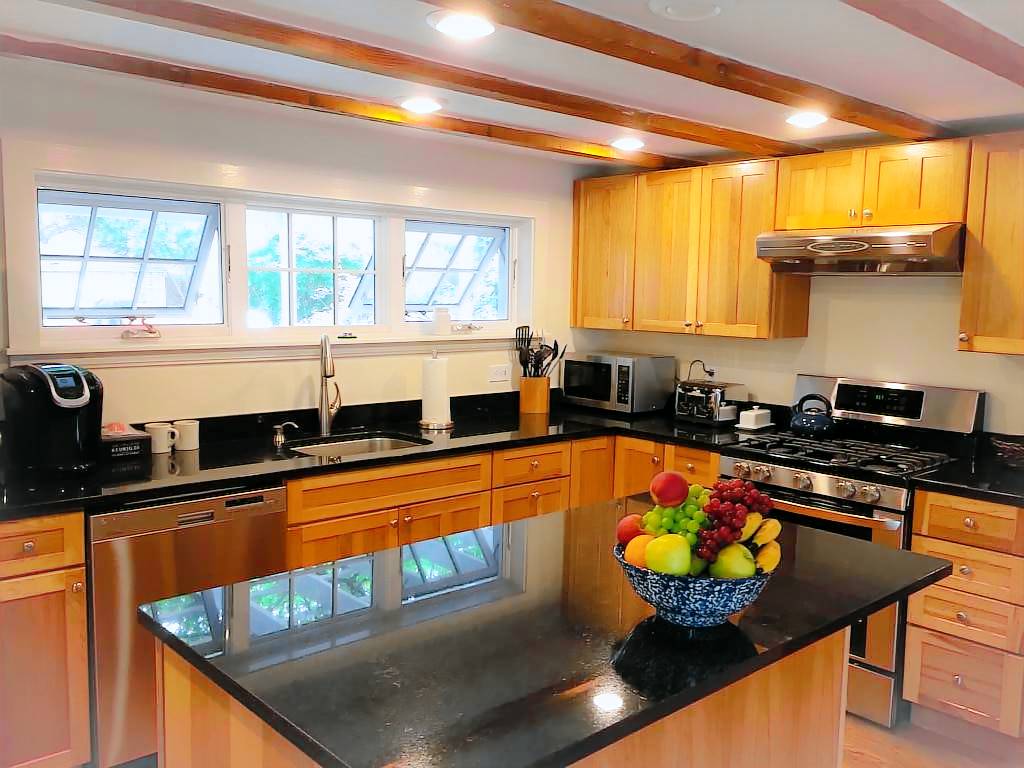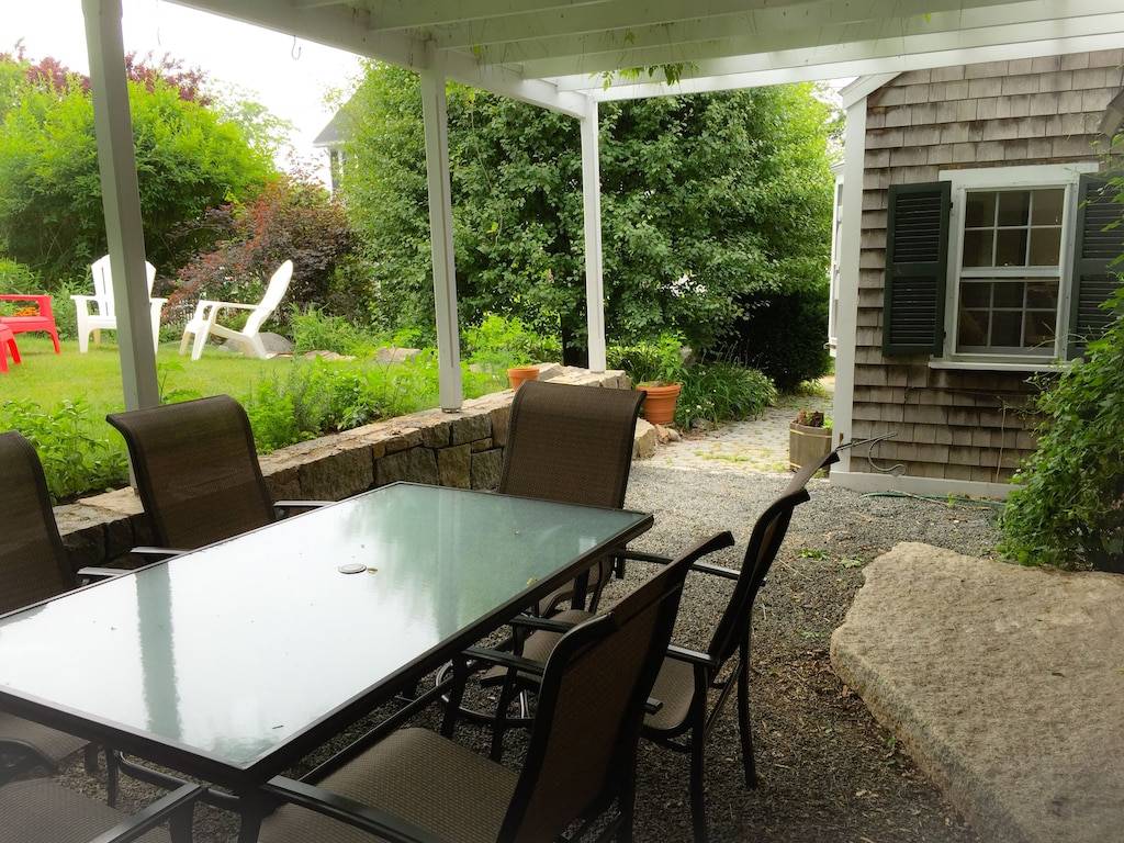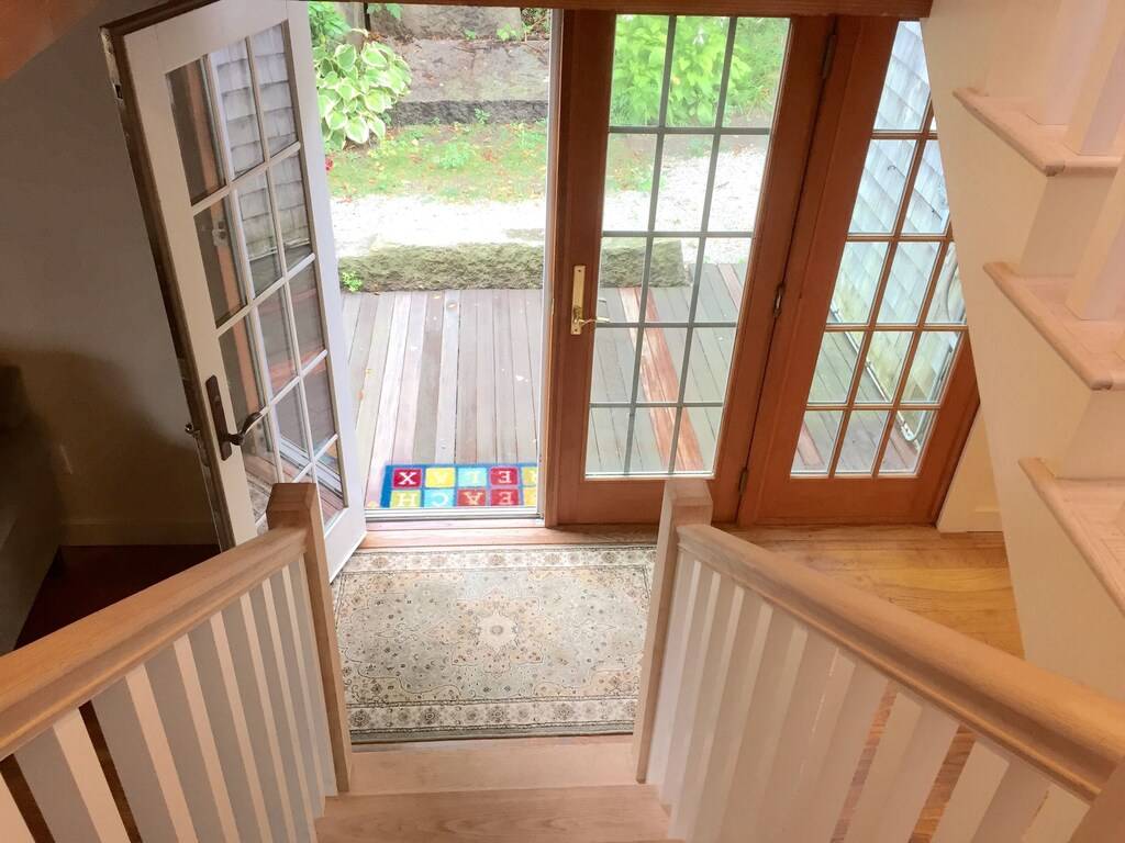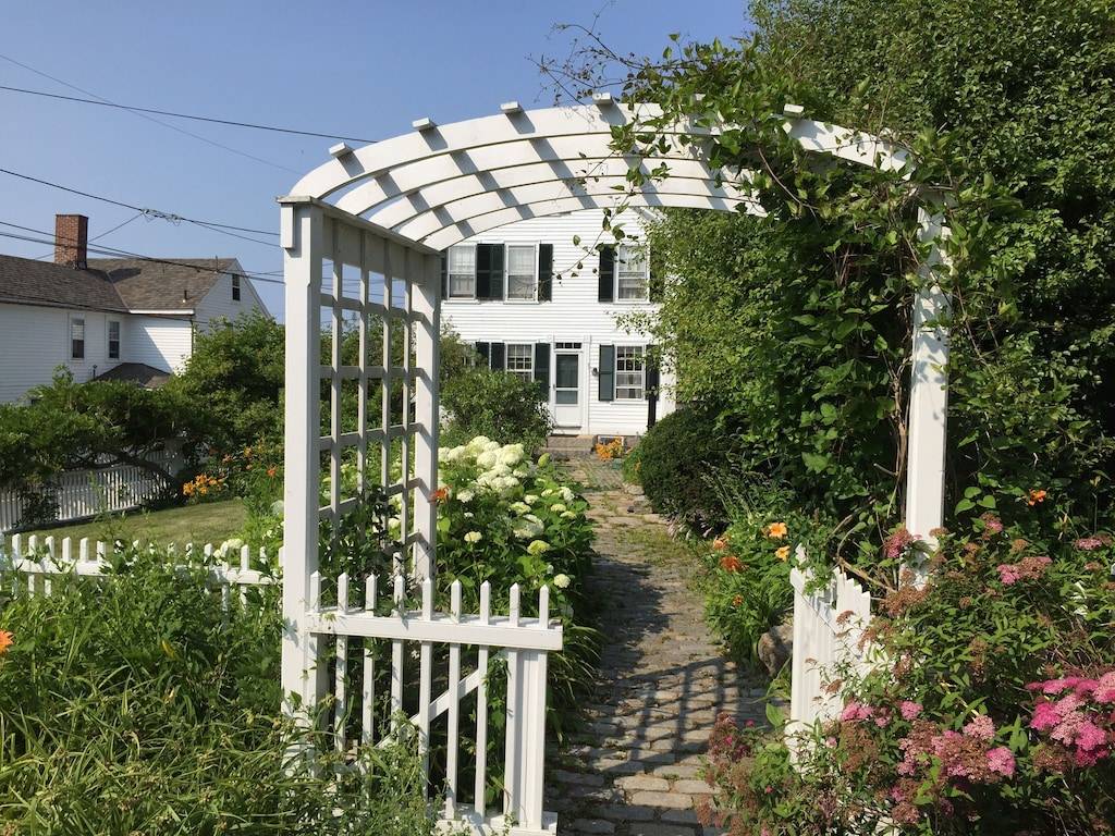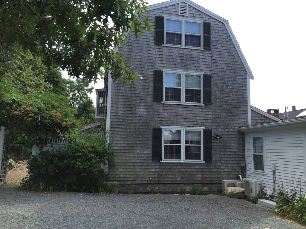 The James Gott Carraige House is the perfect Rockport luxury vacation home. .This fully renovated three bedrooms with sleeping den vacation home (sleeps up to 9 people) offering luxurious high end appliances, finishes and furnishings while remaining very comfortable and accommodating. This home will provide you with the ultimate Rockport experience. Park your car and walk to all that Rockport has to offer. Restaurants, shops, beaches and the Shalin Liu Center. Take a walk along the Atlantic Path which winds along the water’s edge to Rockport Harbor. Less than half a mile to Front Beach with beautiful sandy beach and bath house. This house is located across the street from Rockport Harbor with views from front bedrooms. Enter into the open concept first floor living room. The perfect spot for relaxing and socializing. Pass through the dining area into the gorgeous granite kitchen with large center island, five burner gas stove and half bath off Mudroom. All the conveniences you may require. The second floor has the master bedroom suite (Queen) w/private bath. A den with futon, 40 inch TV and second bath. Third floor has second master (Queen), laundry, half bath and bedroom with a full and twin bed. Private backyard with gas grill patio dining area shaded by a pergola and ancient wisteria. Two off street parking spaces ( in tandem).