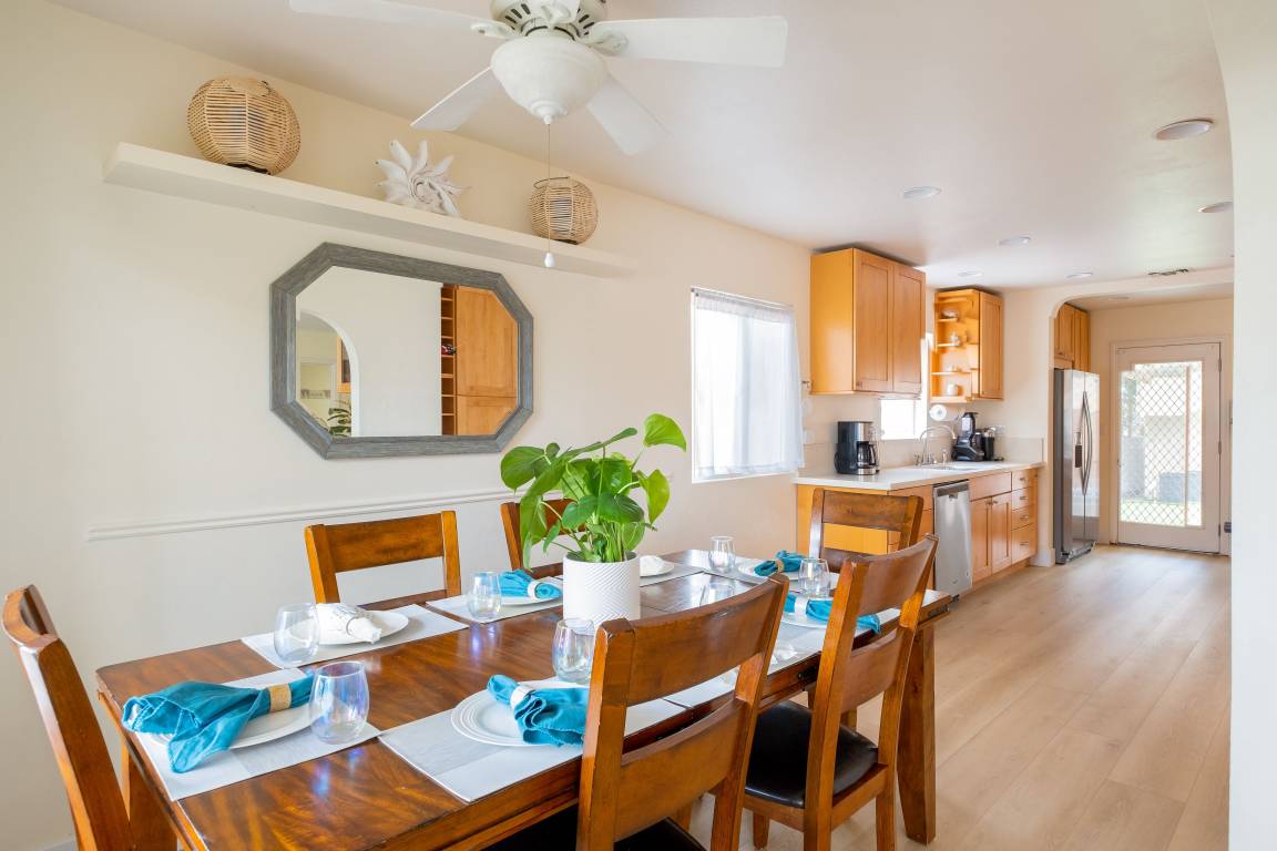 Located on a quiet street in North Pacific Beach, just 2 blocks to the beach, this newly remodeled spacious 4 bedroom 2.5 bath home has it all for your family beach holiday! Large kitchen, central A/C, two brand new stunning bathrooms, one car garage and large yard with jacuzzi, BBQ, putting green and plenty of outdoor seating. Our front porch is great for enjoying a cup of coffee or tea in the morning, reading the paper or magazine, or just relaxing with the ocean breeze and California sun. We have all the beach gear you’ll need, such as boogie boards, beach chairs, umbrellas, coolers, towels, beach toys, wagon, and baby gear for your little ones! Professionally cleaned using enhanced cleaning protocols. Internet speed is 500 Mbps.