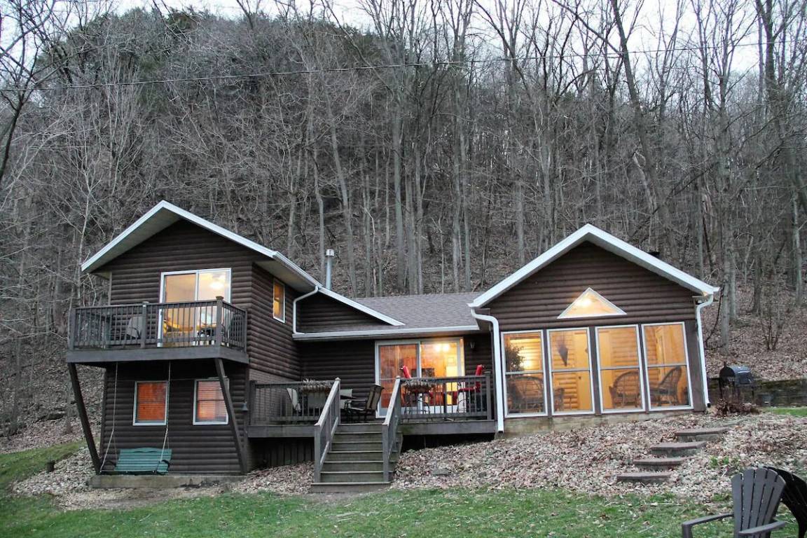 Escape to a secluded Mississippi riverfront cabin nestled at the base of a bluff, where you can unwind on a gorgeous beachfront and gather around a cozy fire pit.