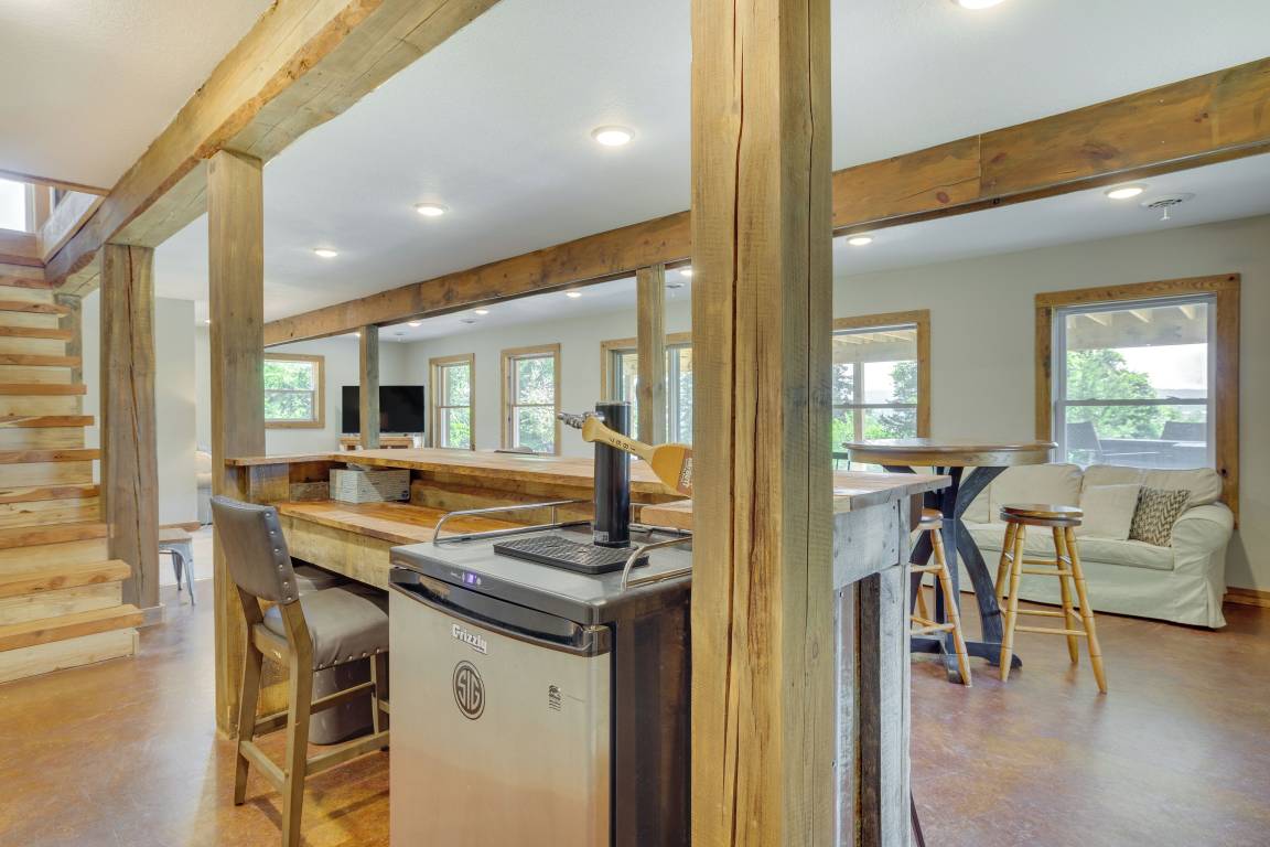 INDOOR LIVING: Smart TV, fireplace, dining table w/ bench seating, bonus living area w/ bar, bar seating, additional dining space, board games, open floor plan
