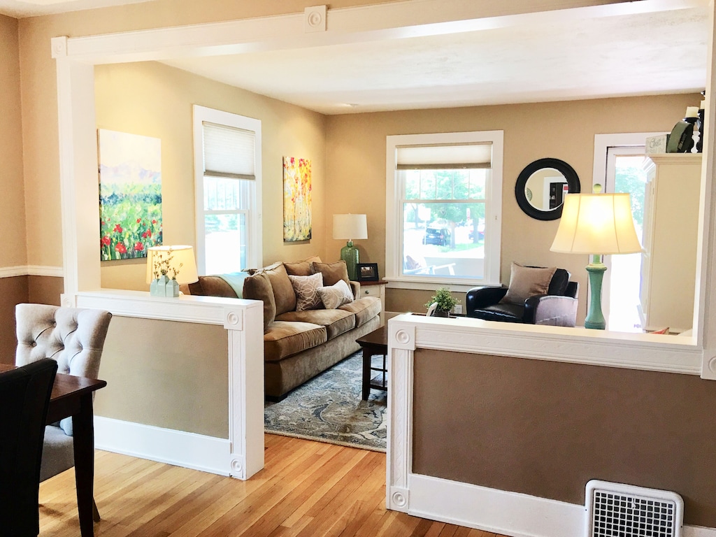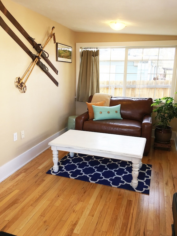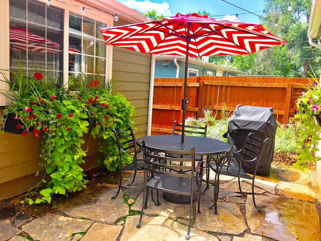Adorned with natural elements, this home features the inspiring colors of the majestic Colorado mountain region. Colorado’s native wildflowers and outdoor beauty have been attractively brought indoors. You’ll love the original hardwood floors, French doors, heated tile floor in the bathroom, enormous windows for letting in Colorado sunbeams, and the newly remodeled, fully stocked kitchen (complete with stainless steel appliances). The home is fully Air-Conditioned. The open-concept living room flows effortlessly into the dining room for entertaining. Enjoy free High Speed Wi-Fi, the comfortable couch, new queen beds featuring high-quality hypoallergenic mattresses, new bed linens and coverings from Pottery Barn, new large stainless steel kitchen appliances and small appliances, and artwork painted by the owner!