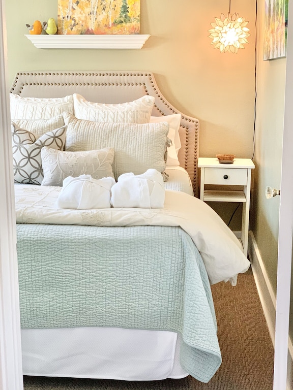 • Sleeps up to 5 people (2 people in the Purple Mountain Majesty bedroom, 2 people in the Juniper Bedroom and 1 in the Snow-On-The-Mountain room’s pullout twin sofa sleeper)