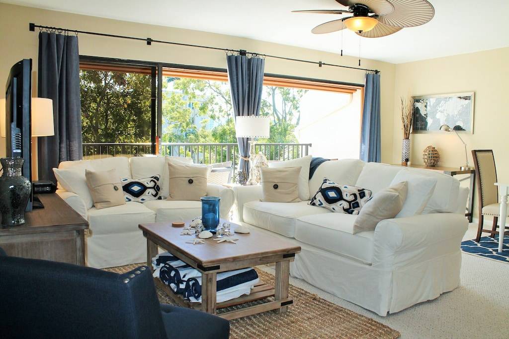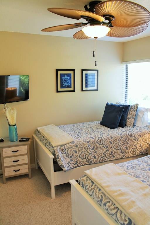This unit features a great floor plan and renovation. The unit is engrossed in sunlight from the wall of sliders facing the boat basin and ICW. The modern design is classic & comfortable. Enjoy the relaxing master suite with queen bed, guest suite has 2 twins and large sofa is a premium queen pull-out. There is a large flat screen in the living area, in the master suite and another in the guest bedroom (3 total). Everything is new – appliances, glasses, dishes, towels, bed sheets, mattresses, couches, tables, chairs….EVERYTHING was new from recent renovation. Just because you are away from home, it does not mean you need to be without! Stay with us and let us pamper you.