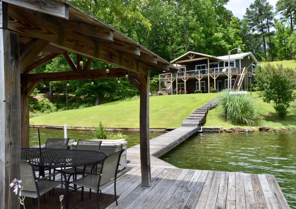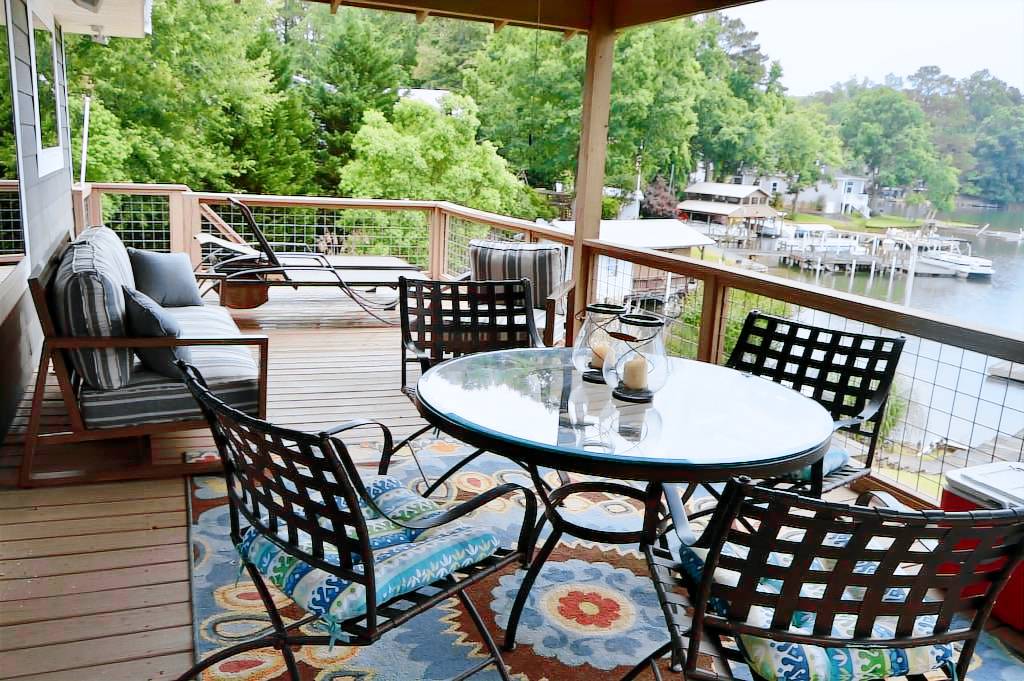 Come and experience our newly renovated home. We’ve updated and enlarged it so that it’s not only comfortable for lakeside enjoyment but offers you enough room to bring family, friends and yes, even the fur baby! With king beds on two levels, there won’t be any fighting over who gets what bed, and a secondary living room keeps the teens occupied! The master suite has new furniture and a private master bathroom suite with updated amenities.