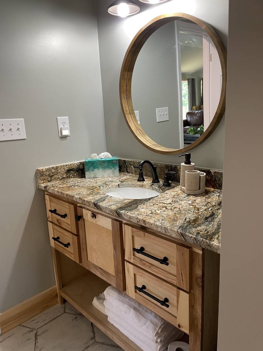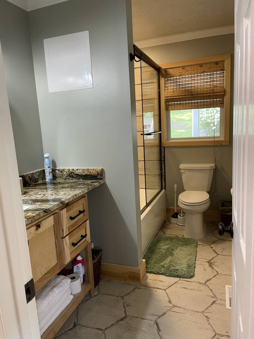 The 2nd bedroom on main floor has a queen bed just across has from full updated bathroom with tub/shower combo, so no fighting over a bathroom! Downstairs on the lake level is bedroom #3 with a king bed. Adjacent to bedroom #3 is the secondary living area with a queen pullout sectional with a round metal cocktail tail with a storage compartment w/sheets, pillows & blankets just for the sectional. Bathroom #3 fully updated featuring a standup shower.