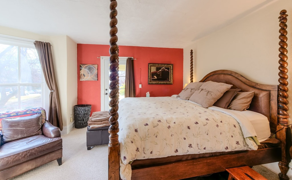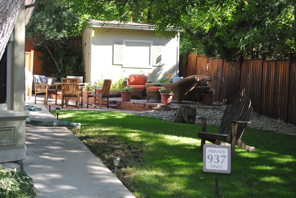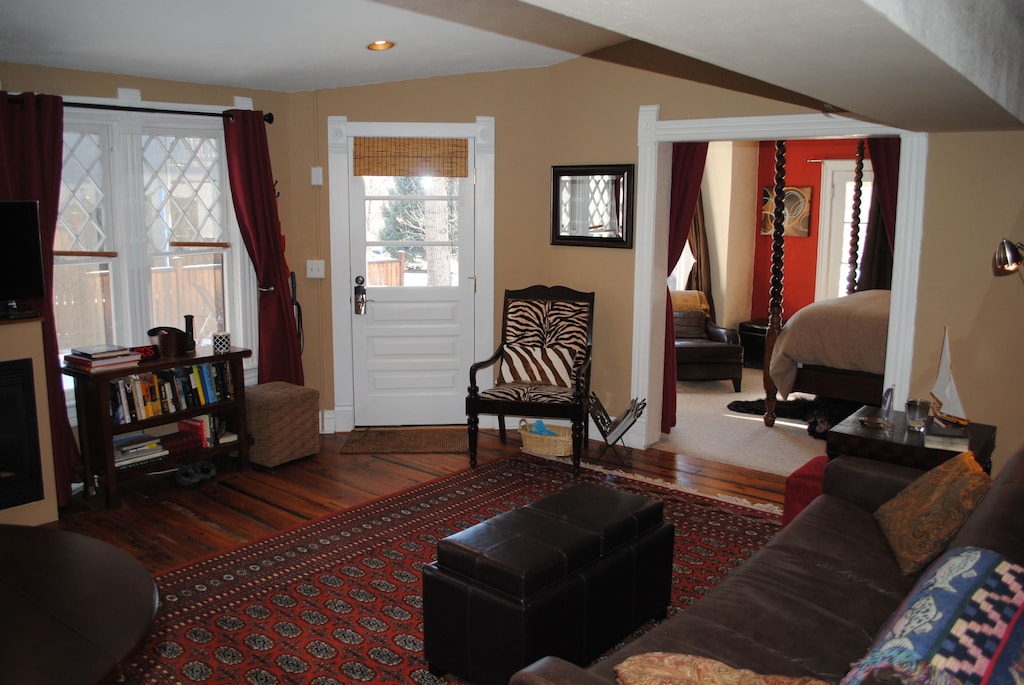 the bedroom also opens to the front porch which is mostly private and has wicker chairs and a front swing for watching BOULDER go by.