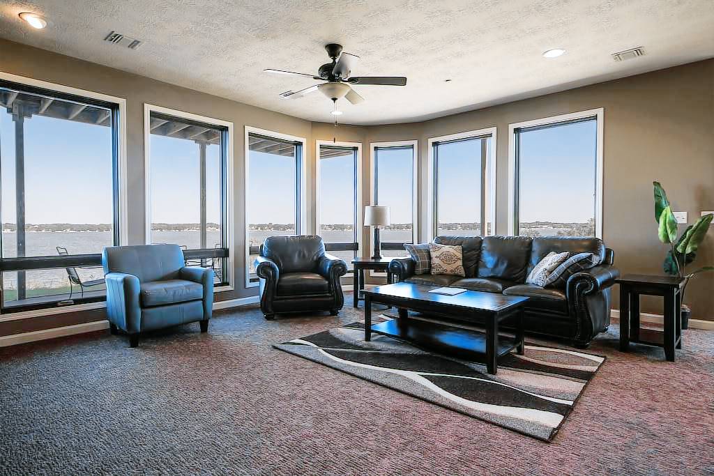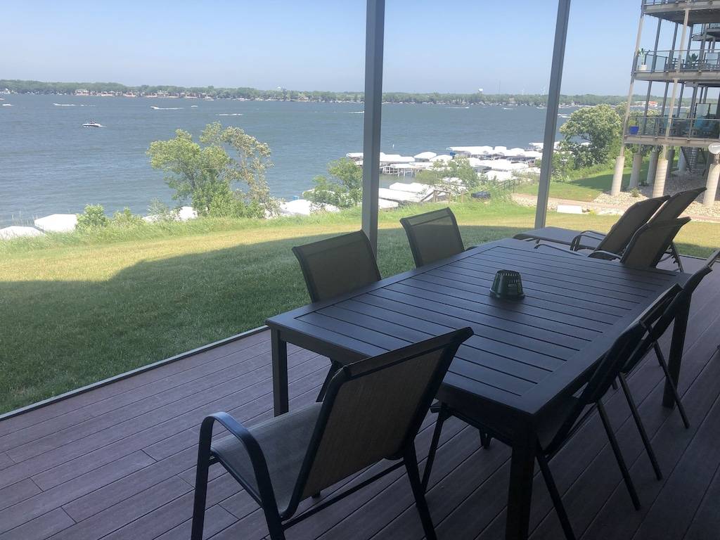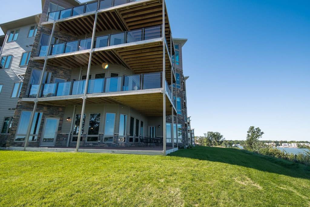 This gorgeous condo is a premier lakefront rental on the Iowa Great Lakes! The Bridges Bay unit is on the east shore of East Okoboji facing west meaning the view and sunsets are absolutely spectacular day or night. The unit is 1818 sq’ with a 438 sq’ deck, 3-bedrooms, exterior entrances due to the first floor location! Two kings and one full size bunk bed – sleeps 8 in beds – more with the provided air mattresses! Full linens and kitchen supplies all there! Includes cable and wi-fi. Six daily passes included for the indoor water park and main outdoor pool. Adjacent smaller pool open to all guests. One of the best on the lakes! Renter pays normal tax and applicable VRBO fee plus any additional fees if using a foreign based credit card.