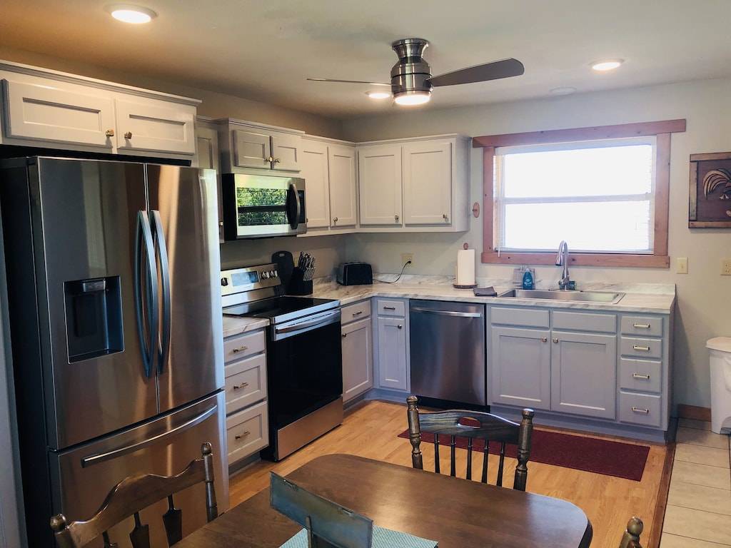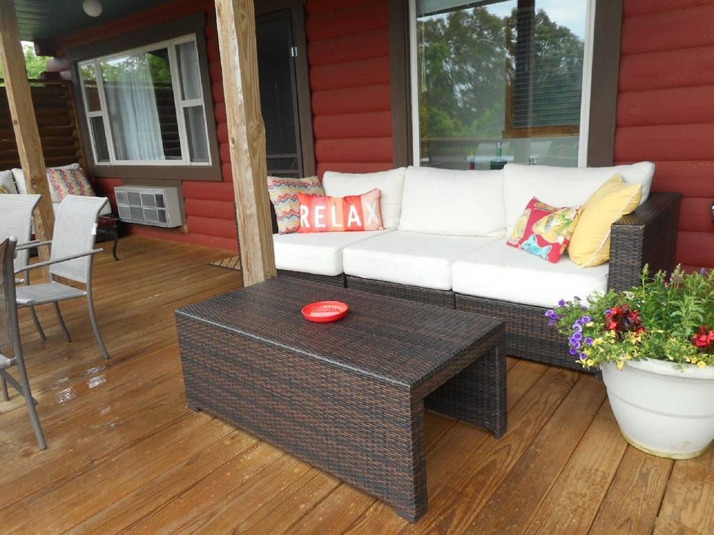 There’s a boat launch ramp just down the hill, a marina around the corner, and a dam site park minutes away. There’s even trout fishing or canoeing on the white river adjacent to the dam. In town, you will find all sorts of entertainment, from a new zip line ride, to a wild animal shelter with lions, tigers, and bears ……. ‘Oh My!’ You can even take a dinner car ride on the old steam engine train from yesteryear. Our shops and restaurants are over the top with quality and uniqueness. Check in time for the cabin is 3:00 PM and check out time is 11:00 AM.