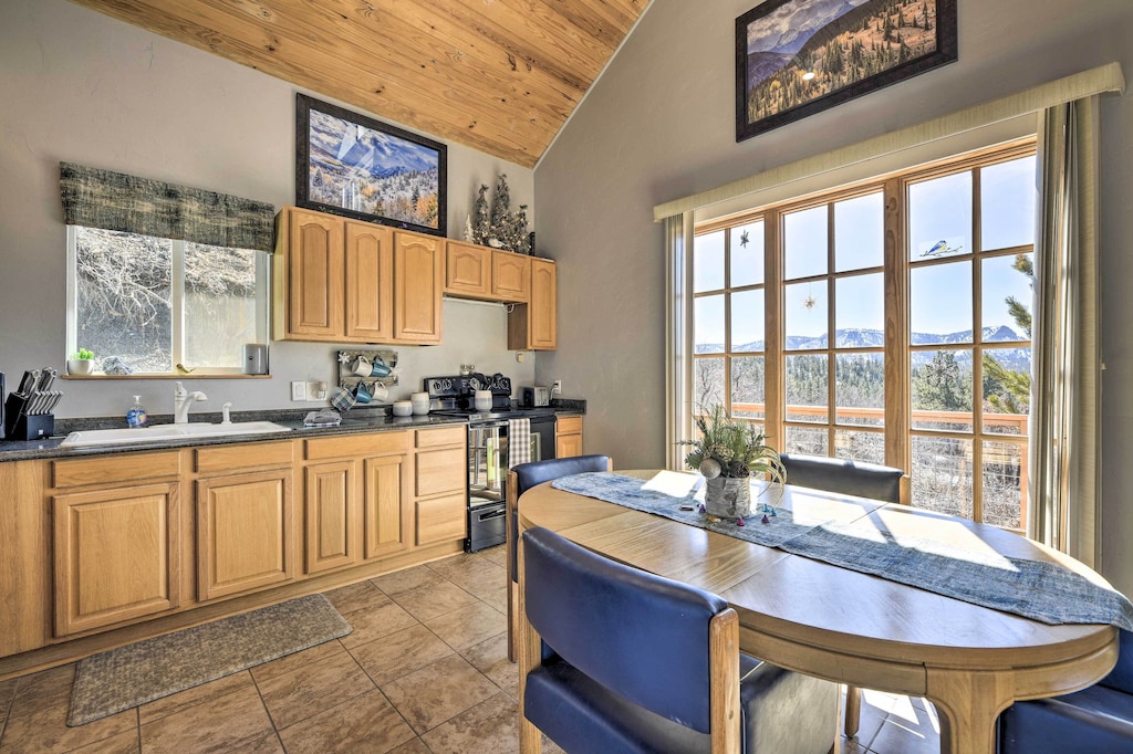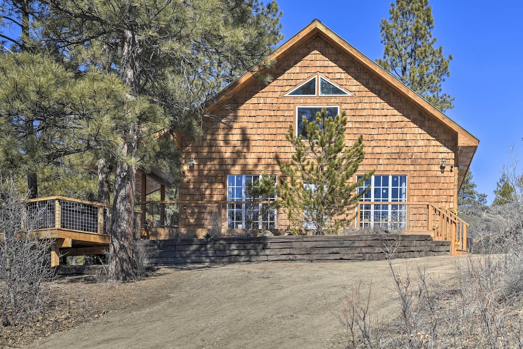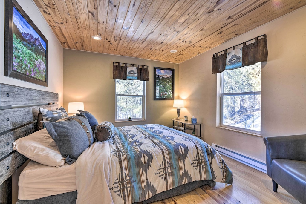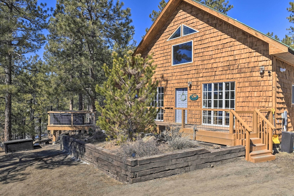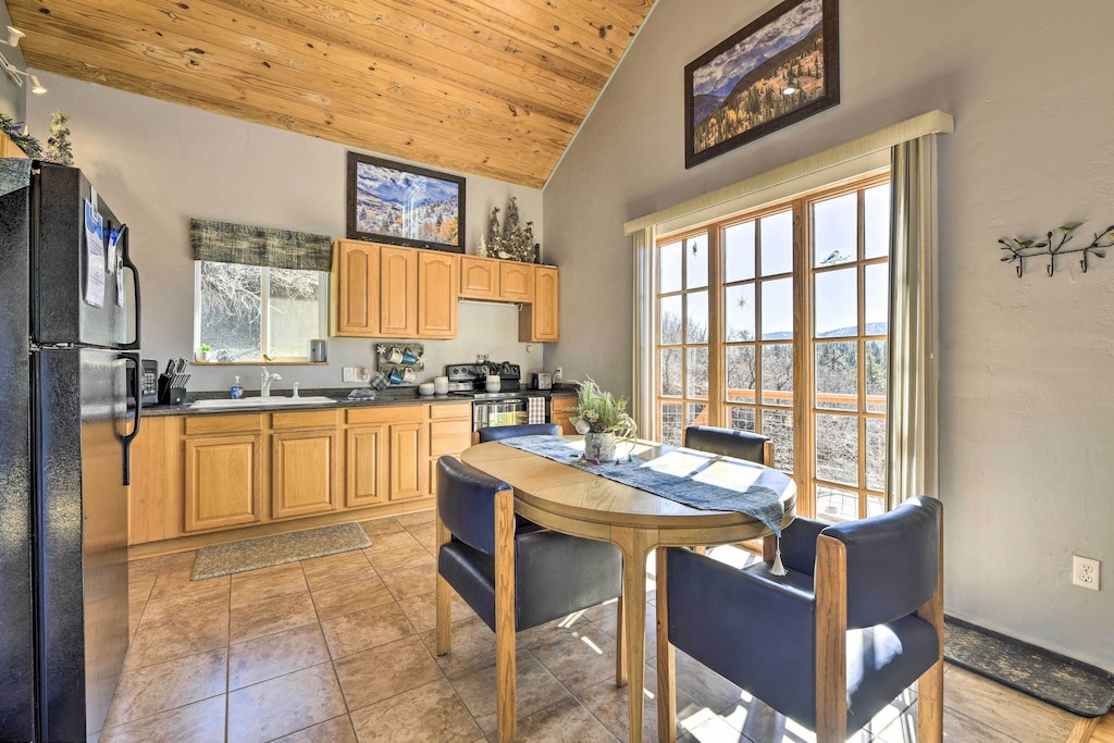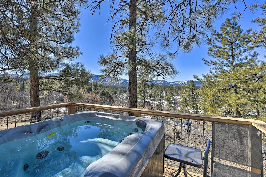 Experience the Rocky Mountains like never before at this 3-bedroom, 1-bath vacation rental nestled directly on the border of the San Juan National Forest! This family-oriented residence offers a tastefully furnished interior with Smart TVs, a kitchen, gorgeous views, as well as an exterior with a deck and private hot tub. Whether you’re in town to traverse Wolf Creek Ski Area, enjoy the town, or visit Chimney Rock, this cottage is the perfect Pagosa Hot Springs retreat!