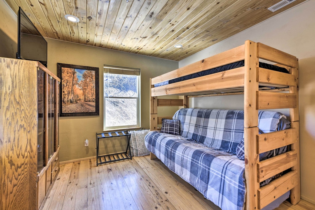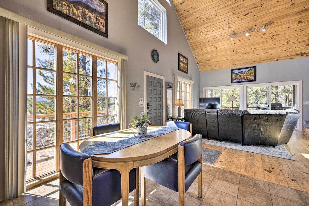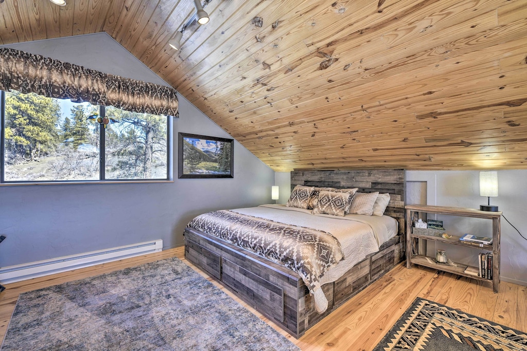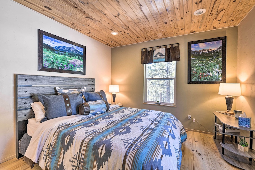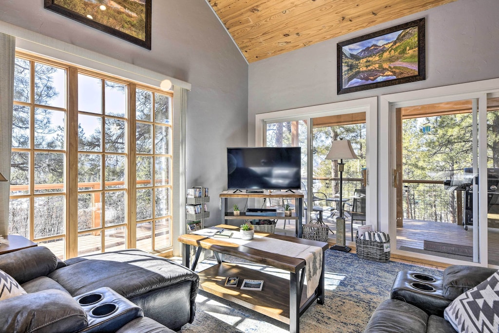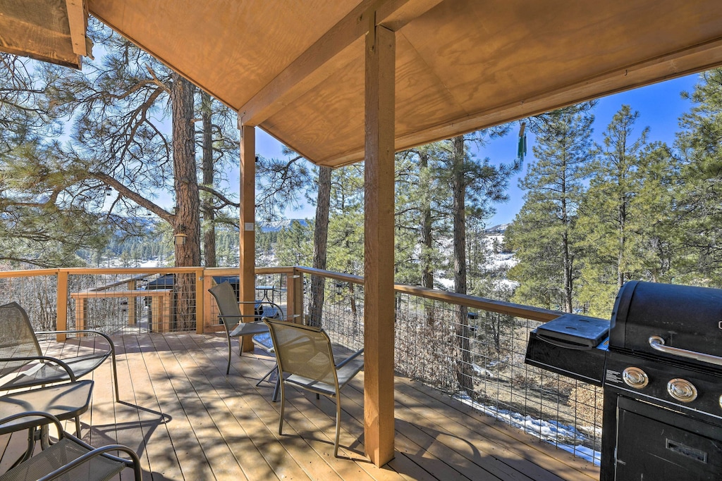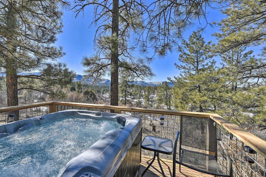 Experience the Rocky Mountains like never before at this 3-bedroom, 1-bath vacation rental nestled directly on the border of the San Juan National Forest! This family-oriented residence offers a tastefully furnished interior with Smart TVs, a kitchen, gorgeous views, as well as an exterior with a deck and private hot tub. Whether you’re in town to traverse Wolf Creek Ski Area, enjoy the town, or visit Chimney Rock, this cottage is the perfect Pagosa Hot Springs retreat!