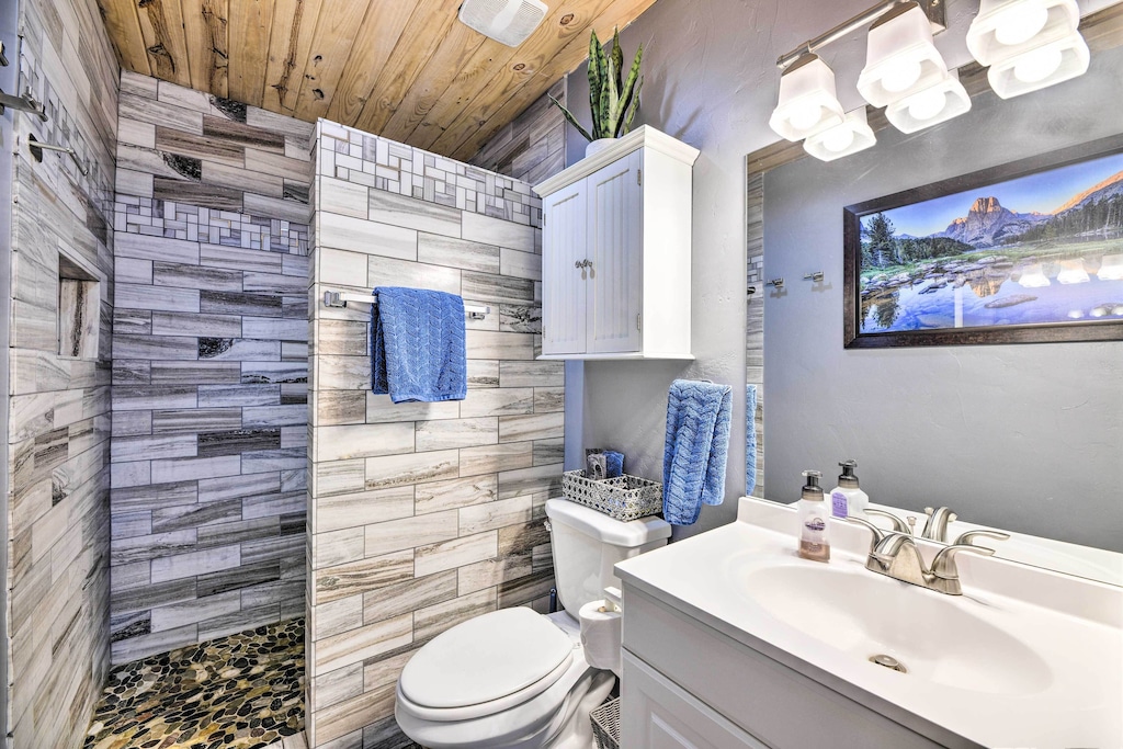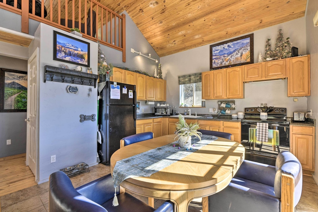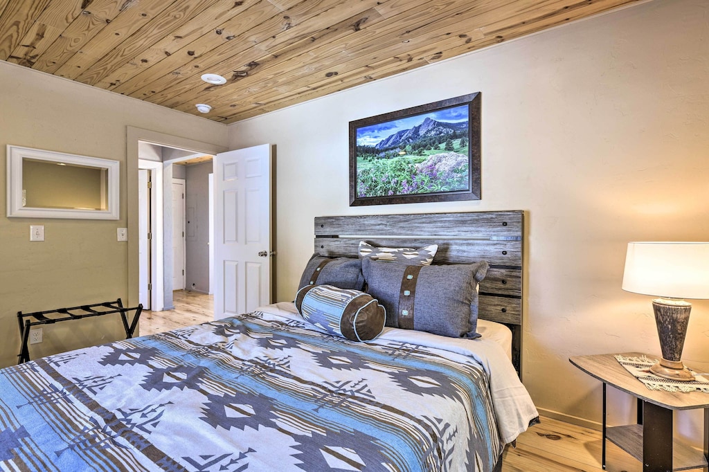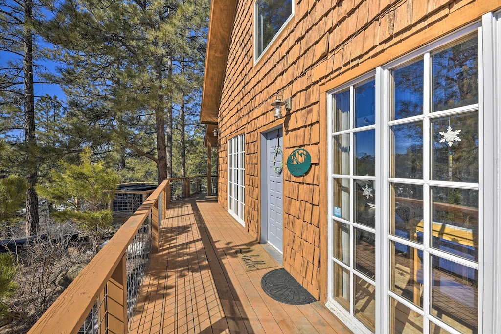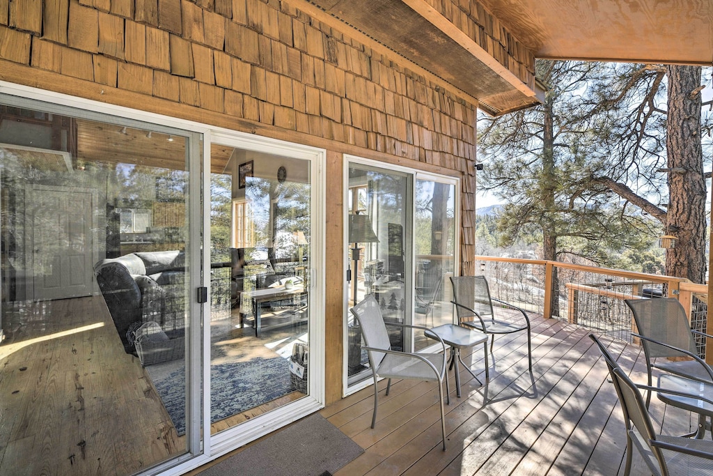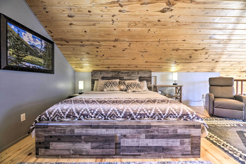 Experience the Rocky Mountains like never before at this 3-bedroom, 1-bath vacation rental nestled directly on the border of the San Juan National Forest! This family-oriented residence offers a tastefully furnished interior with Smart TVs, a kitchen, gorgeous views, as well as an exterior with a deck and private hot tub. Whether you’re in town to traverse Wolf Creek Ski Area, enjoy the town, or visit Chimney Rock, this cottage is the perfect Pagosa Hot Springs retreat!
