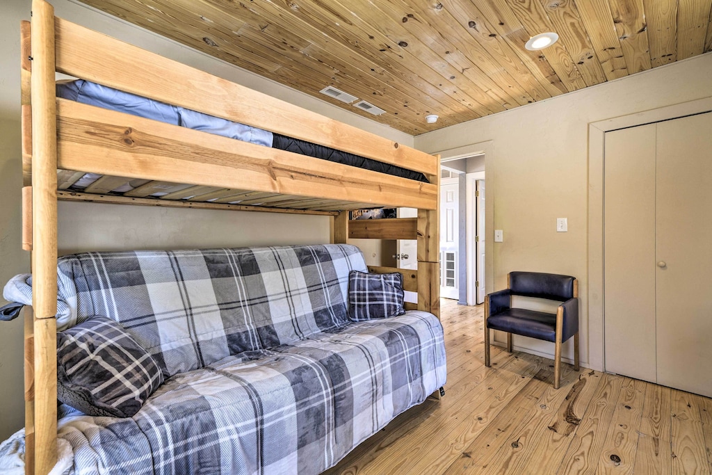 Bedroom 1: King Bed | Bedroom 2: Queen Bed | Bedroom 3: Twin/Full Futon Bunk Bed | Additional Sleeping: 2 Queen Rollaway Beds, 2 Queen Air Mattresses, Pack ‘n Play